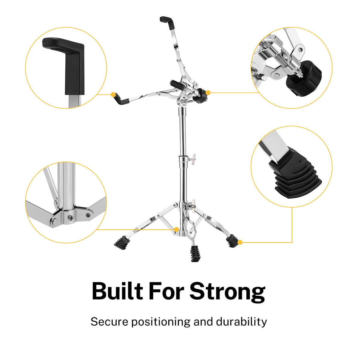 Product Description Built For Strong, Secure Positioning And Durability, The Drum Stand Is An Ideal Mounting Solution For Snare Drums This Portable Drum Stand Can Easily Be Adjusted To Your Preferred Height (From 18 To 25) Heavy-Duty Design With Sturdy Double-Braced Tripods, Excellent For Your Live Shows And Studio, No Issues Whatsoever Price Was Right As Well I Would Recommend This Stand, Especially If You Are On A Budget The Rubber Contact Tips Grip The Bottom Hoop Of Any Drum From 10 To 14, Preventing The Grip Of The Basket From Restricting Tone And Resonance Finally, Practically Any Mounting Angle Is Possible With The Baskets Secure Uni-Lock Tilter The Package Come With The Drum Stick Holder, Holds Up To 10 Pairs Of Standard Drum Sticksspecifications Stand Material: Metal Sticks Holder Material: Metal+Nylon Arm Length: 78 Cm 20 Inches Foot Length: 23 Cm 9 Inches Diameter: 25 Cm 1 Inches Pole Height Range: 355-41 Cm 14-16 Inches Height Range: 46-65 Cm 18-25 Inches Net Weight: 1655G 365 Pounds (Just Stand)Package Included: 1 X Donner Drum Sticks Holder 1 X Donner Snare Drum Stand
