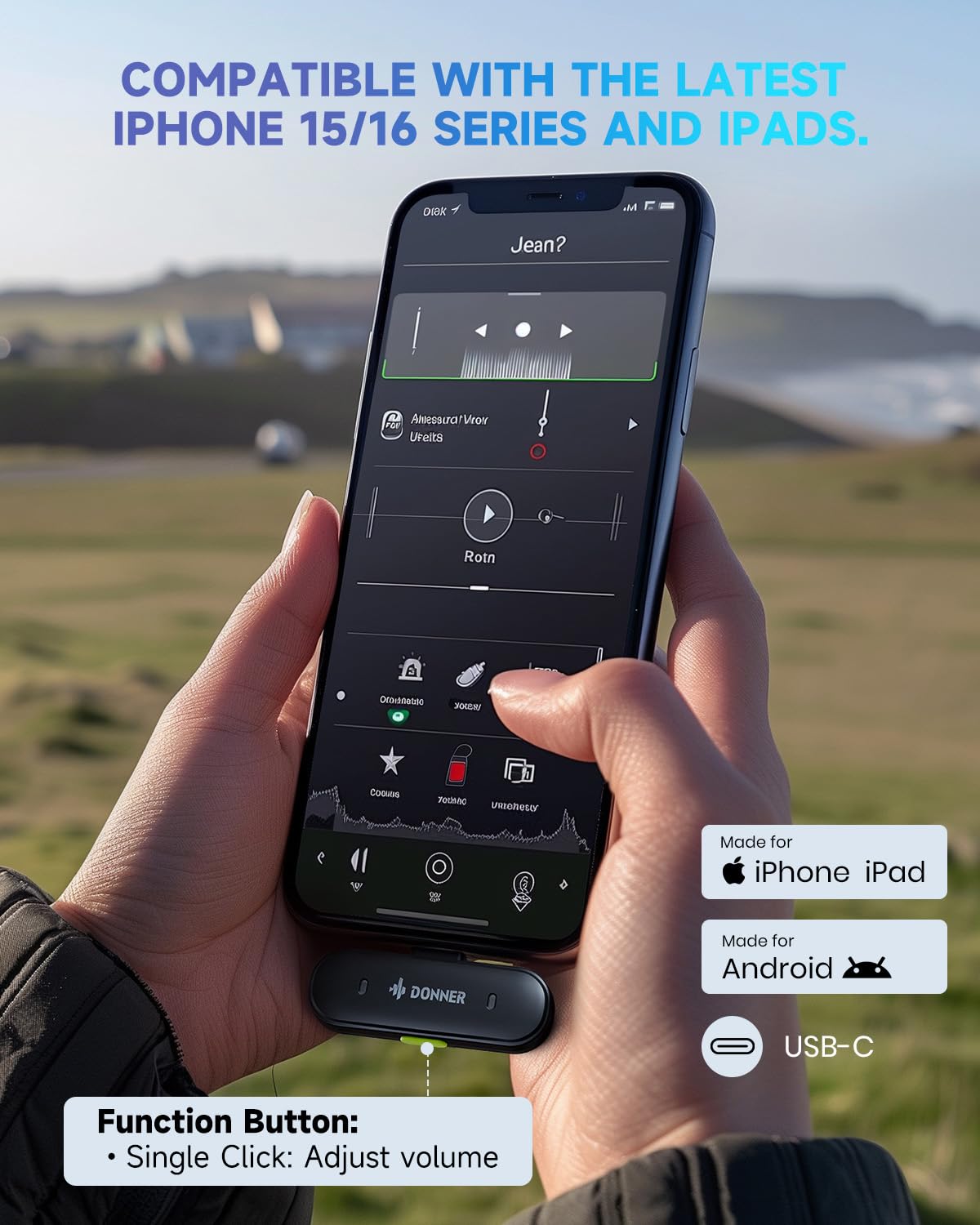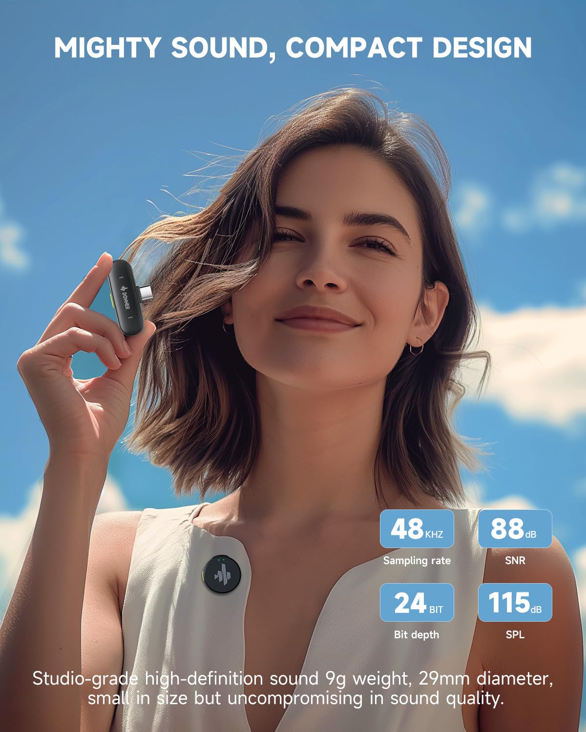 Donner Wireless Lavalier Microphone Vpm-20 Mobile Vesion For Usb-C Iphone Ipad Android, With Charging Box, Dual-Channels Mics, Plug-Play, 1000Ft Range, 48Khz 24Bit, Noise Cancellation, 40H Use Max