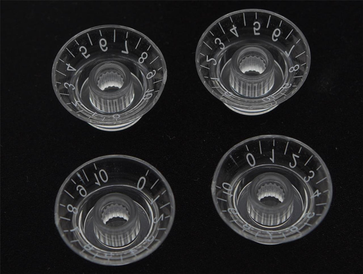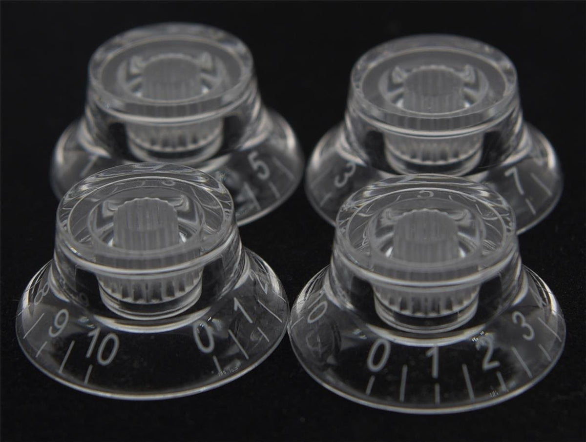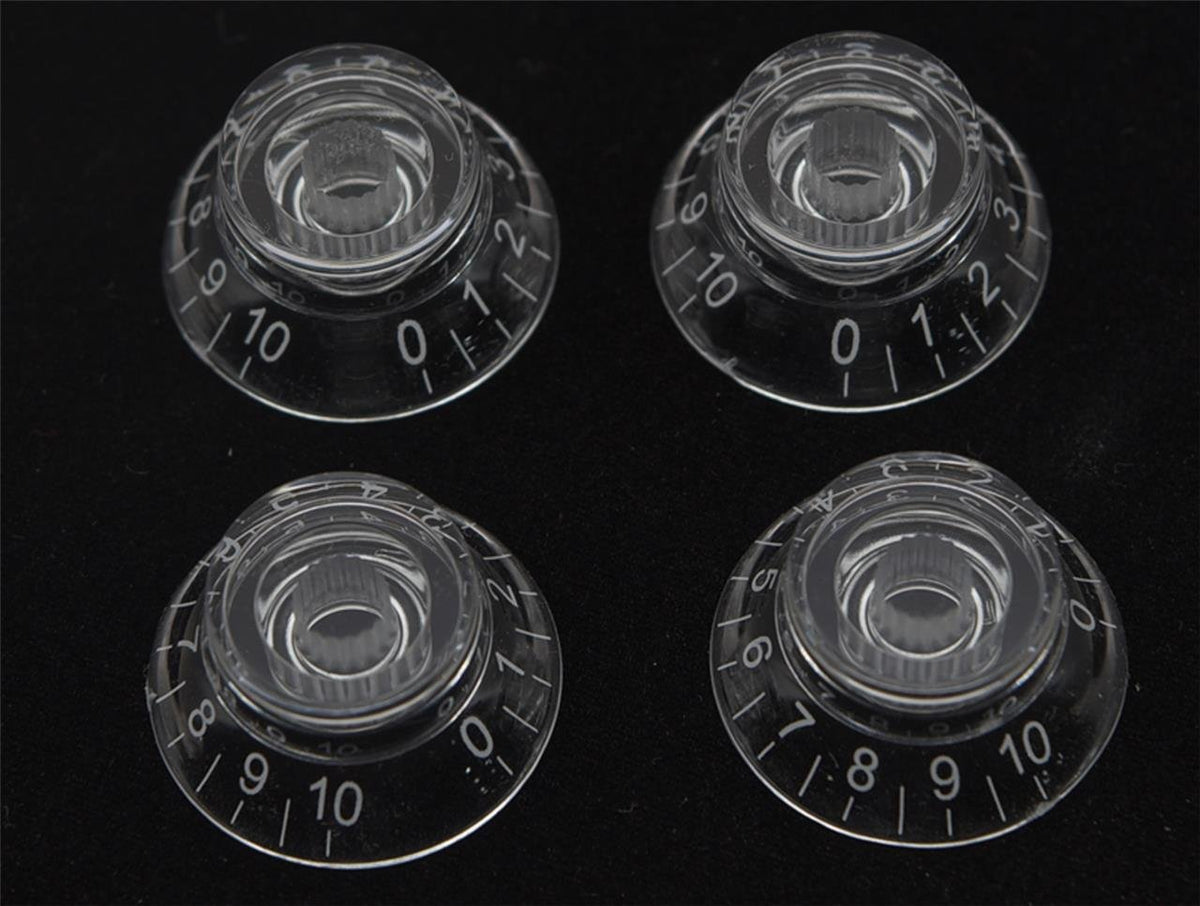 Dopro 4Pcs Clear W/White Number Lp Guitar Bell Knobs Top Hat Knobs For Epi Les Paul/Import Guitar Bass W/Coarse 5.8Mm Split Pots