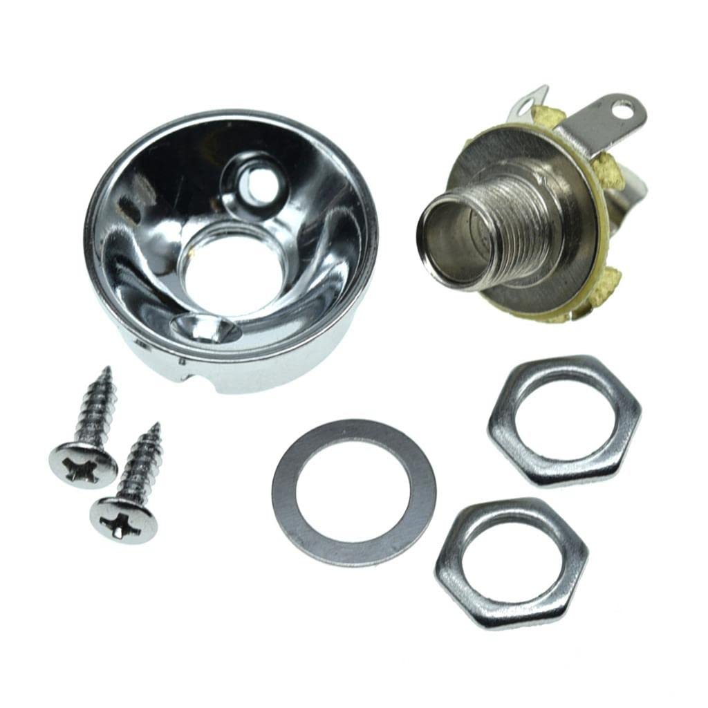 Dopro Chrome Electric Guitar Jackplate Metric Brass Electrosocket Jack Plate With Nickel Brass Mono Output Jack And Screws Fits