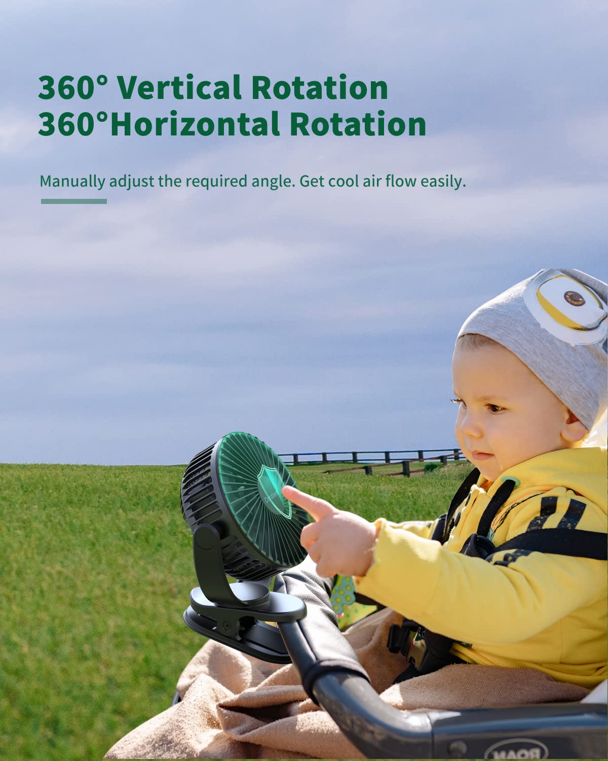 Dorobeen Portable Clip On Fan, 5000Mah Battery Powered Fan, 3 Speed Quiet Rechargeable Mini Desk Fan, 360 Rotate Personal Coolin