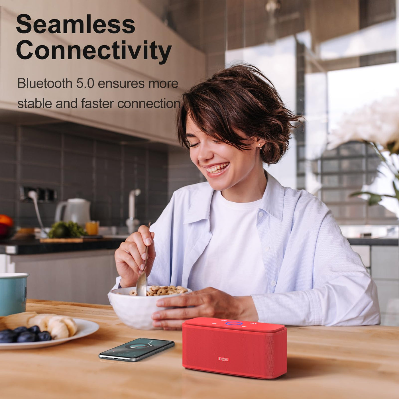 Doss Bluetooth Speaker, Soundbox Touch Portable Wireless Speaker With 12W Hd Sound And Bass, Ipx5 Water Resistant, 20H Playtime, Touch Control, Handsfree, Speaker For Home, Outdoor, Travel Red