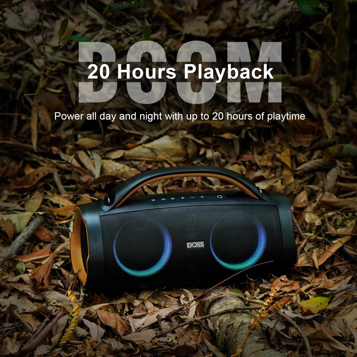 Doss Extreme Boom+ Loud Bluetooth Speaker With 100W Stereo Sound, Extra Bass, 20H Playtime, Party-Sync Led Lights, Built-In Power Bank, Ipx6 Waterproof Outdoor Speaker For Camping, Travel