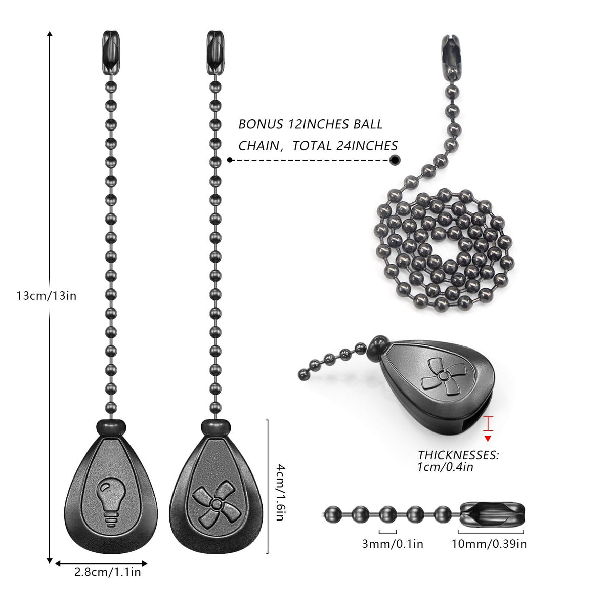 Dotlite Black Ceiling Fan Pull Chain, 4Pcs 12 Inches Decorative Fan Pull Chain Ornaments Extension, 3Mm Diameter Beaded Ball Fan