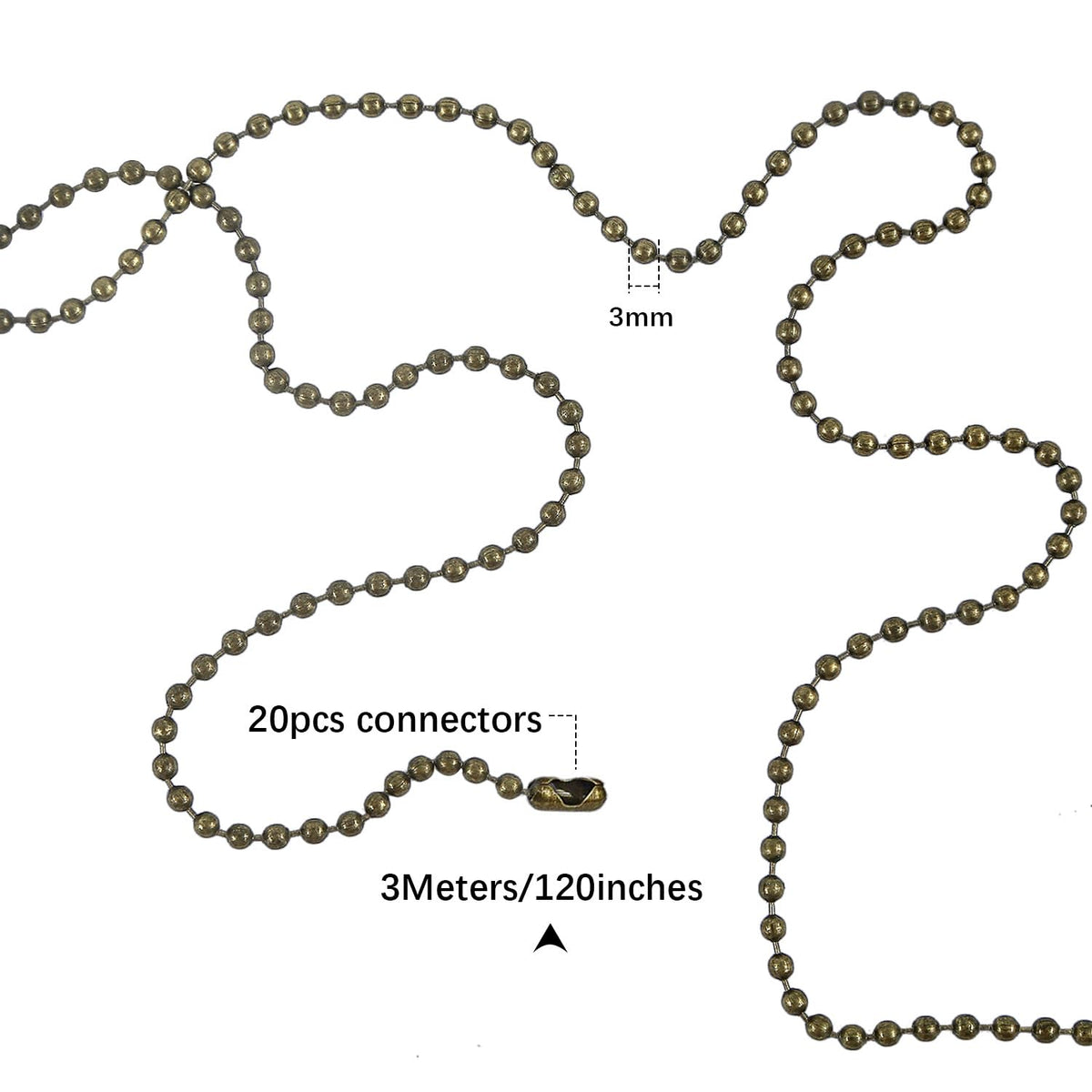 Dotlite Bronze Ceiling Fan Pull Chain, 120'' Extra Long Rust Proof 3Mm Beaded Ball Light Pulls Extension Chains With 20 Connecto
