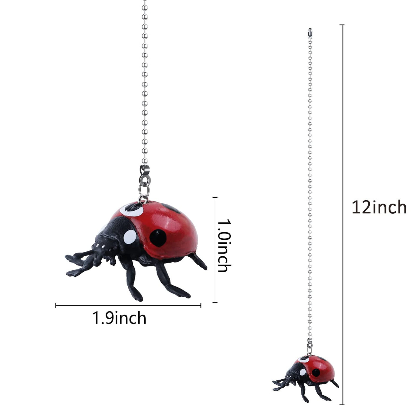 Dotlite Ladybug Ceiling Fan Pull Chain,12In Cute Insect Ladybird Fan String Pulls Charm Extension Decorative,3Mm Diameter Beaded