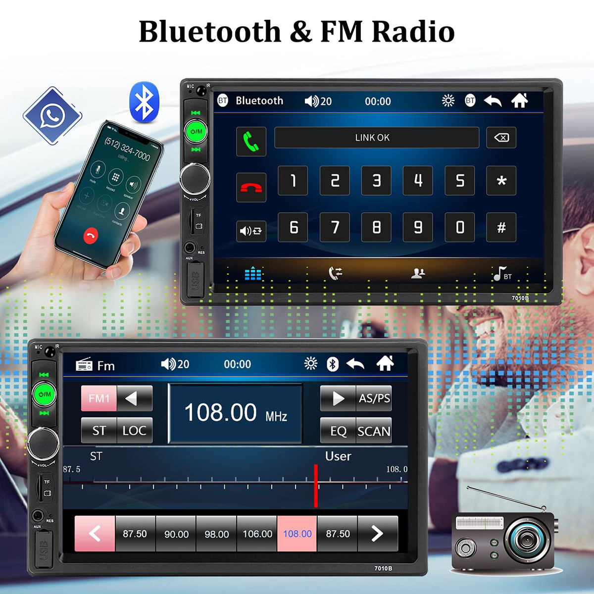 Double Din Bluetooth Car Stereo 7 Inch Car Mp5 Player Digital Touch Screen Display Multimedia Fm Radio Receiver Usb/Aux In/Sd In 2 Din Autoradio Phone Mirror Link Support Backup Camera+Remote Control