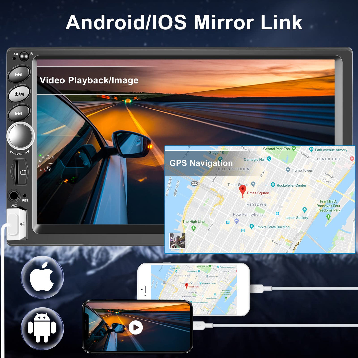 Double Din Car Stereo,7' Touch Screen Radio With Carplay Android Auto Car Multimedia Player Mirror Link Fm Radio Receiver With Bluetooth Aux/Usb Backup Camera Car Audio Head Unit