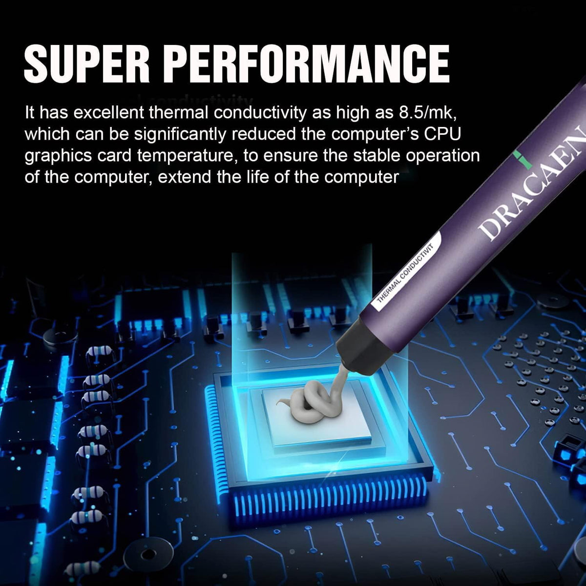 Q: How long does Dracaena Thermal Compound Paste last once applied?A: Once applied, the Dracaena Thermal Compound Paste can last for up to 8 years, ensuring long-term durability and consistent performance.