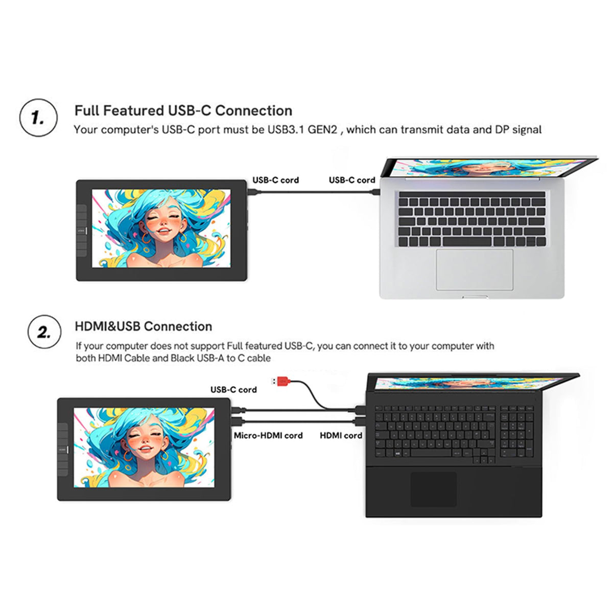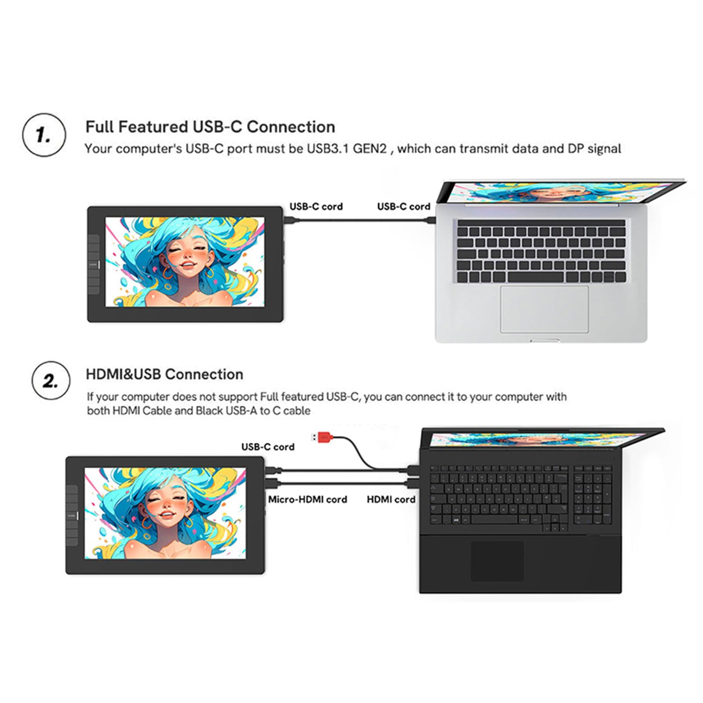 Drawing Tablet With Screen Veikk Vk1200 11.6 Inch Full-Laminated Drawing Monitor With 6 Shortcut Keys And 8192 Levels Battery Fr
