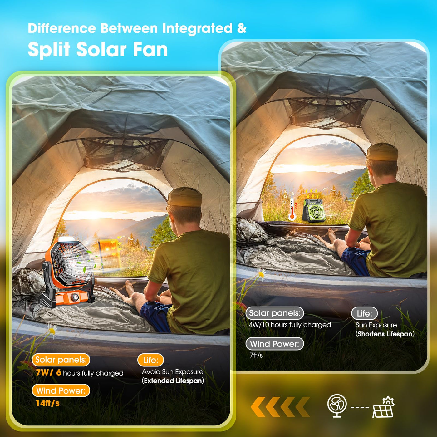 Drchop 10800Mah Solar Powered Fan, 7W Solar Camping Fan & Led Lantern, 8 Inch Rechargeable Fan With Solar Panel, Battery Operate
