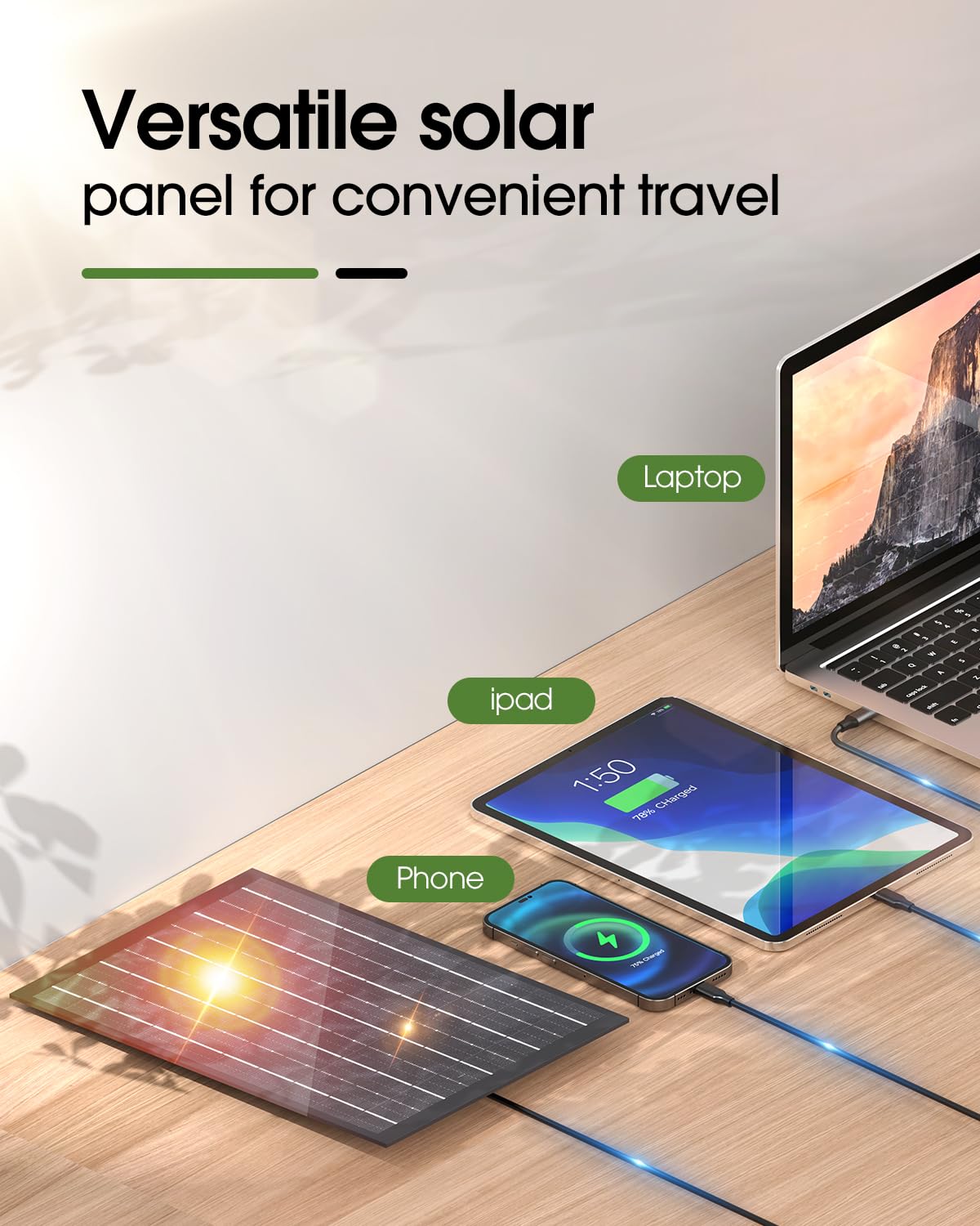 Q: Can the solar panel be used to charge other devices?A: Yes, the solar panel can be used as an emergency charging solution for devices like phones, tablets, and computers, providing versatile utility during outdoor activities.