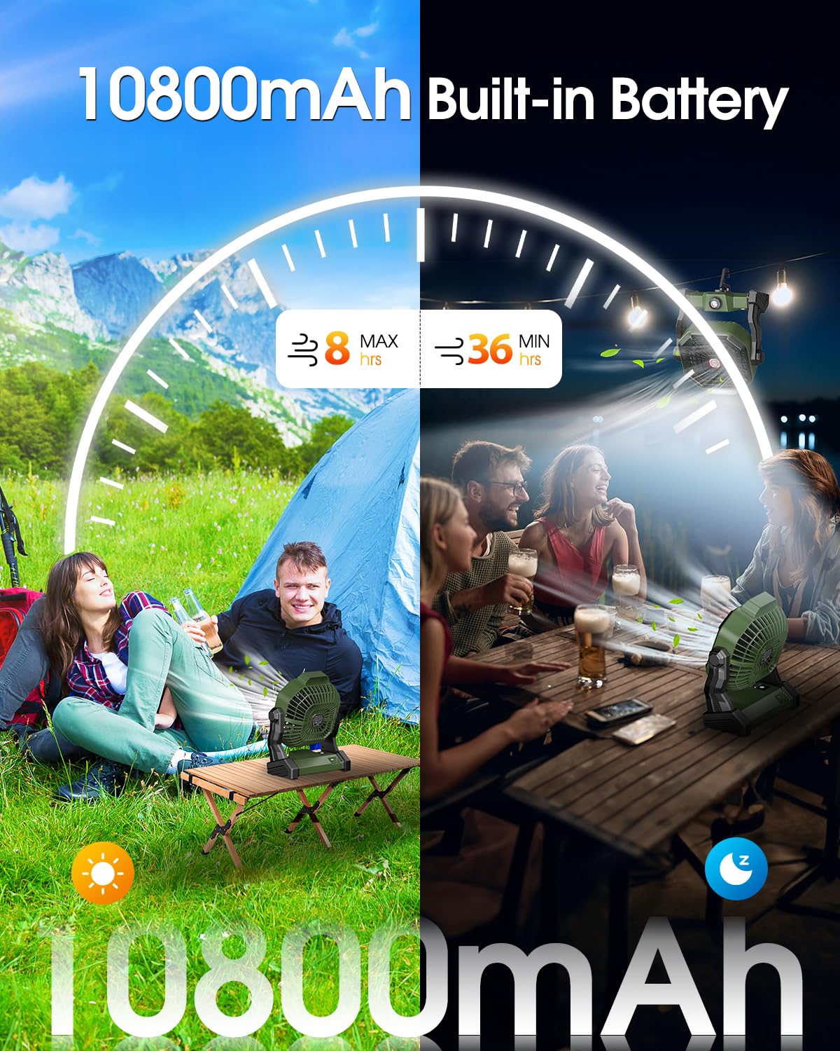Drchop 10800Mah Solar Powered Fan, 7W Solar Camping Fan & Led Lantern, Rechargeable Fan With Solar Panel, Battery Operated Power