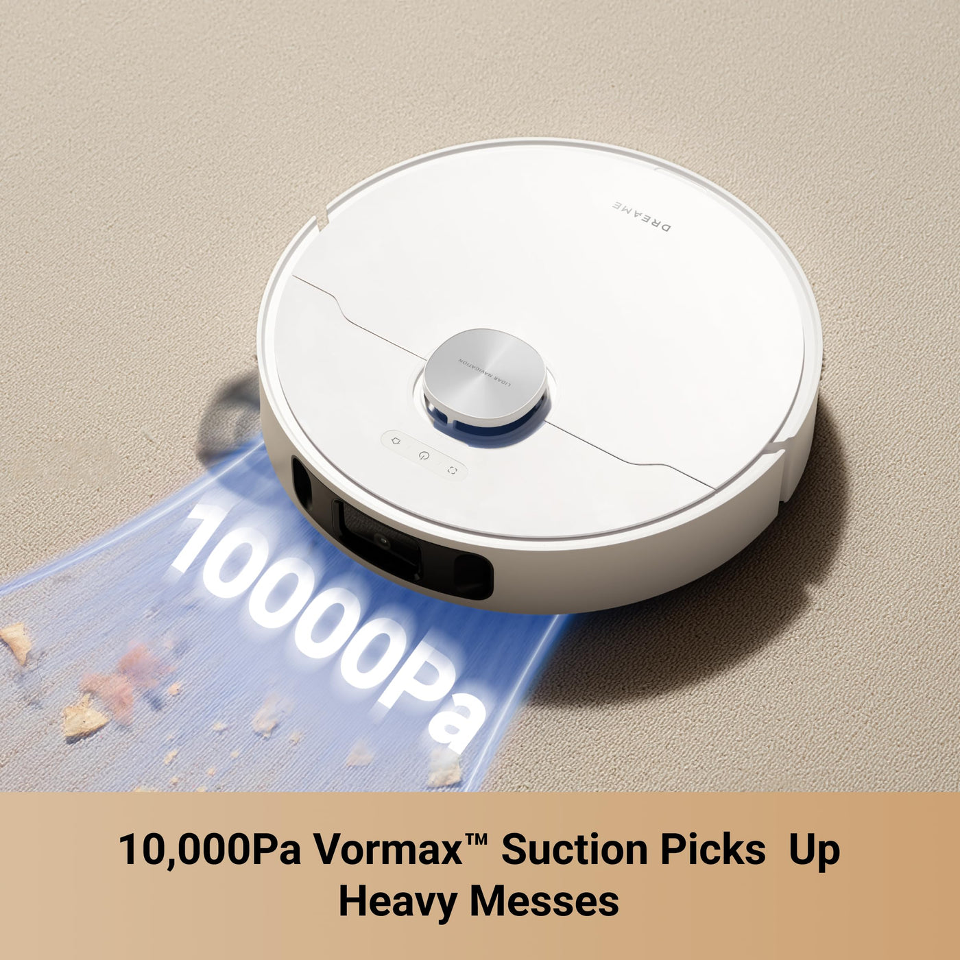 Q: What is the suction power of the DREAME L10s Ultra Gen 2 Robot Vacuum?A: The DREAME L10s Ultra Gen 2 features a powerful 10,000Pa Vormax Suction, ensuring deep cleaning for both hard floors and carpets, effectively removing dirt, debris, and pet hair.