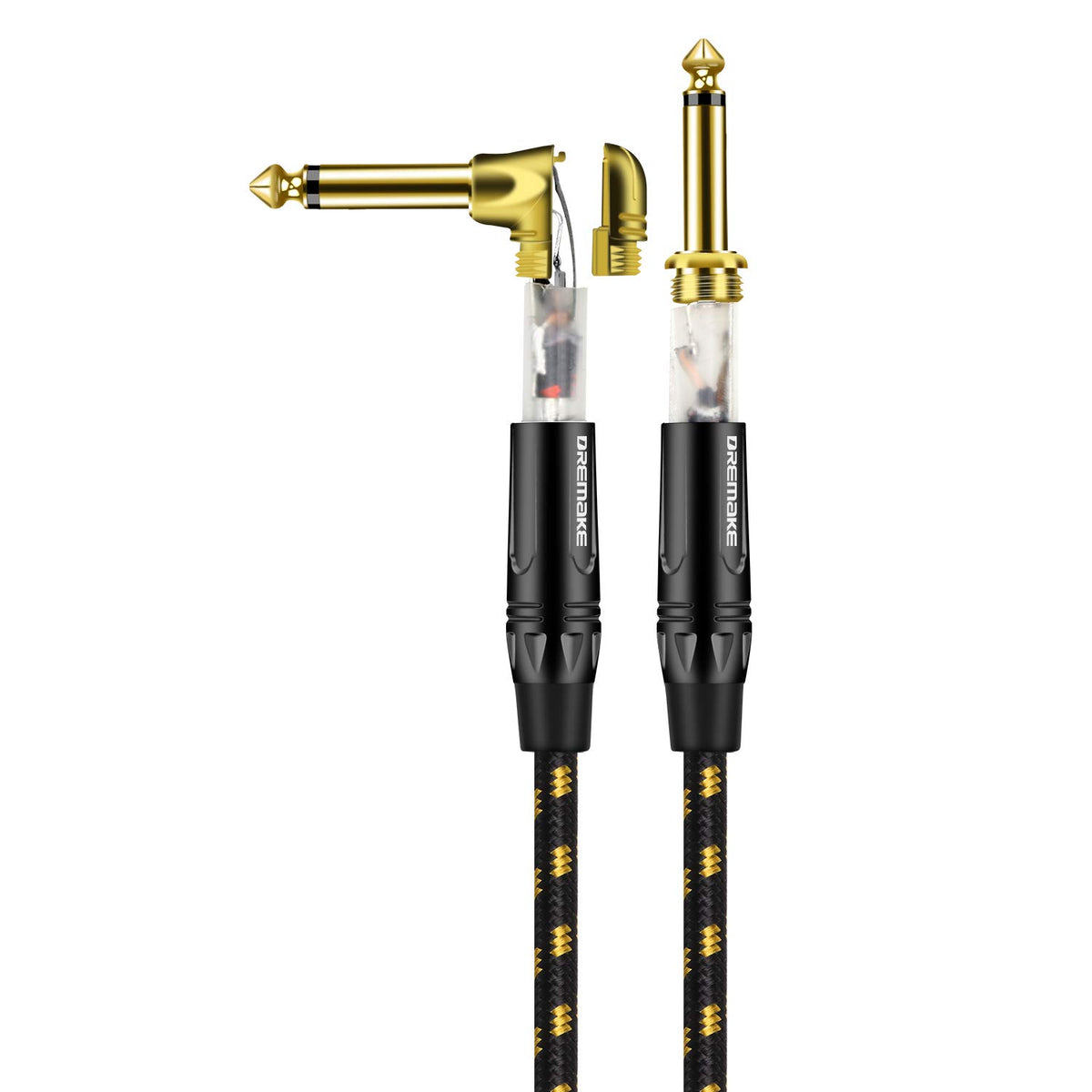 Dremake 14 Inch To 14 Inch Jack 635Mm Patch Cable, Guitar Instrument Cable For Effector, Decoder, Equalizer, Electoronic Organ, Electric Guitar Specifications: Type: 14&Quot Straight To 14 Right Angled Connectors: Gold Plated 14 Inch (635Mm) Mono Plug Cable Shell: Use The Black Electrophoretic Paint Zinc Alloy Shell Cable Od: 60Mm(24Awg) Cable Jacket: Blackyellow Braided Tweed Cable Length: 15 Feet45M Package Content: 1 X Quarter Guitar Cable