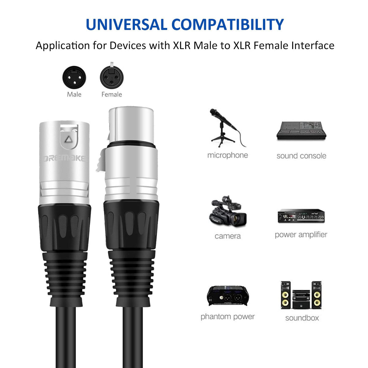Dremake 33Ft Xlr Cable - Male To Female Balanced Patch Cord For Microphone, Dj, Pro & Live Sound - Black