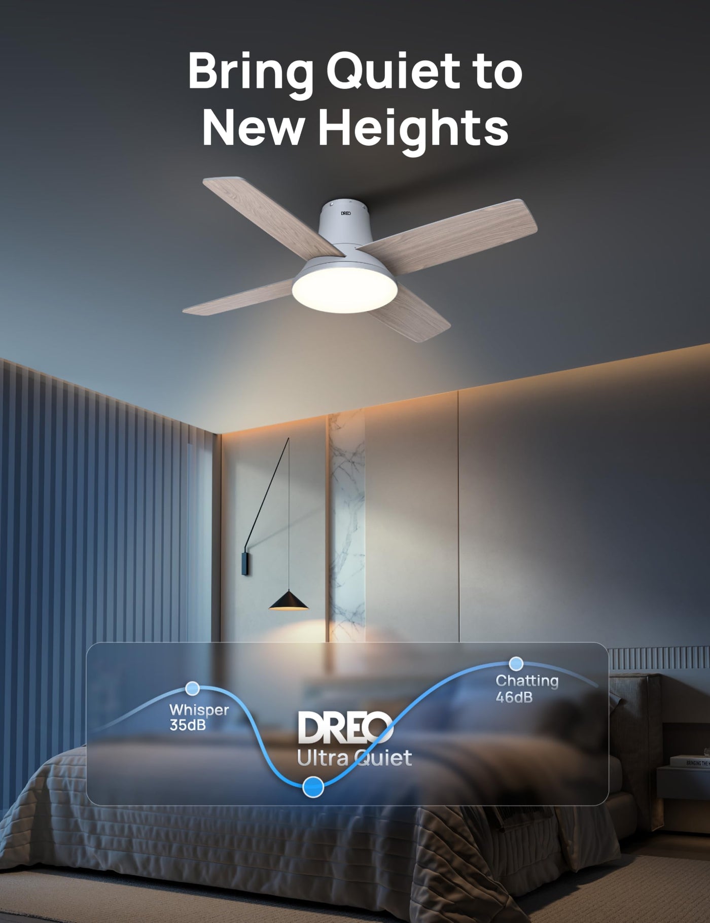 Q: What safety features does the Dreo Ceiling Fan have?A: The Dreo Ceiling Fan is designed with safety in mind, including a mute button on the remote to eliminate operational sounds and a warning to ensure screws are tightened during installation to prevent any accidents.