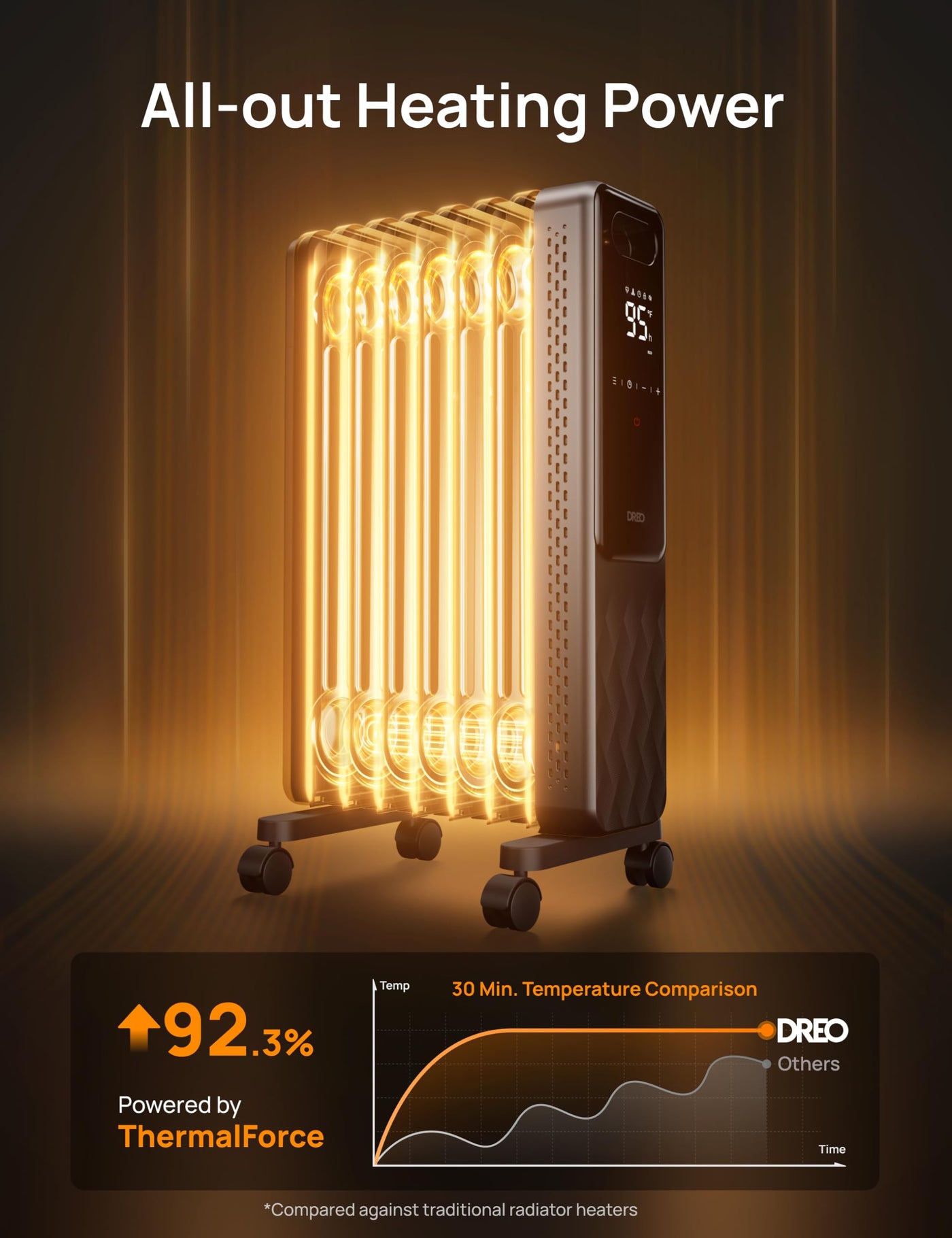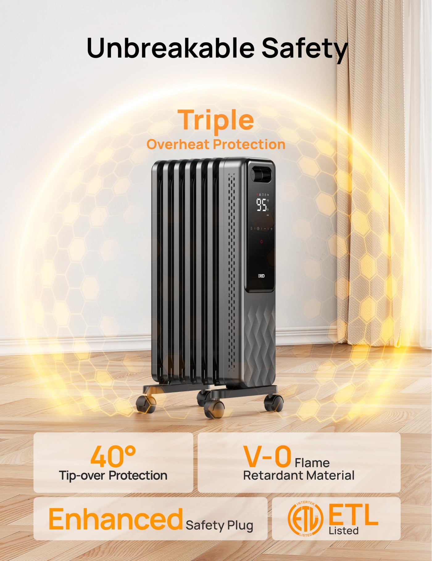 Dreo Oil Filled Radiator, Electric Radiant Heaters For Indoor Use Large Room With Remote Control, Child Lock, 4 Modes, Overheat