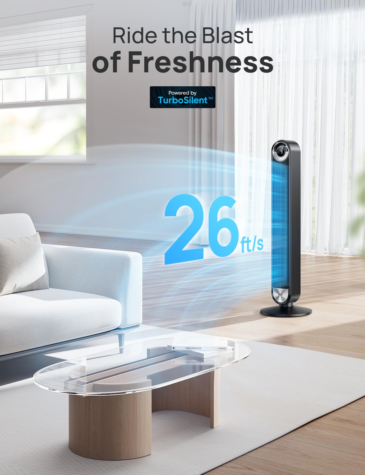 ?????????????????? ???????? ????????????: Built To Perform In Large Spaces, The Cruiser Pro T2 Brings Large 42' Tower Fan Performance With 26 Ft/S Fast Winds And A Massive 1076 Cfm Of Air Volume, Giving You All The Wind You Need To Cool In An Instant | ???????????? ??????????????????: Powered By Dreo Turbosilent Technology, This Tower Fan For Bedroom Is The Ideal Bedtime Companion, Featuring A Dc Brushless Motor, It Brings Down Noise To Only 25Db, Quieter Than A Whisper | ???????? ?? ???????? ?????? ?????????? ??????????????????: With 9 Speeds And 4 Different Modes This Floor Fan Comes Packed With Everything You Need To Cool Down Your Summer, Plus You Can Access All This Functions Easily Through The Control Panel And Built-In Display | ???????? ???????????? ???? ???????? ????????: Using A Smart Algorithm And Precise Temp Sensors, This Tower Fan Automatically Switch Wind Speeds To Keep Your Room Comfortably Cool Even With Temperature Changes Throughout The Day | ???????? ???????? ?????????? ????????: This Tower Fan With Remote Is The Ideal Bedtime Companion, When Preparing For Sleep, With Just The Touch Of A Button, This Tower Fan Sleep Mode Will Automatically Adjust Wind Speed To Noise And Dim The Display Lights For You