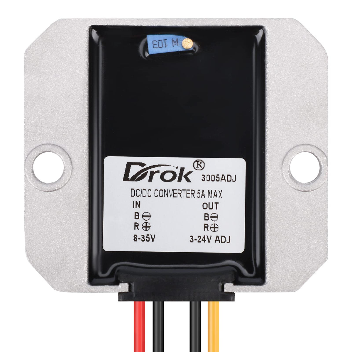 Drok Dc-Dc Buck Converter - 8-35V To 3-24V, 5A Power Supply, Step Down Regulator Module, 24V 12V 5V Volt Transformer Stabilizer