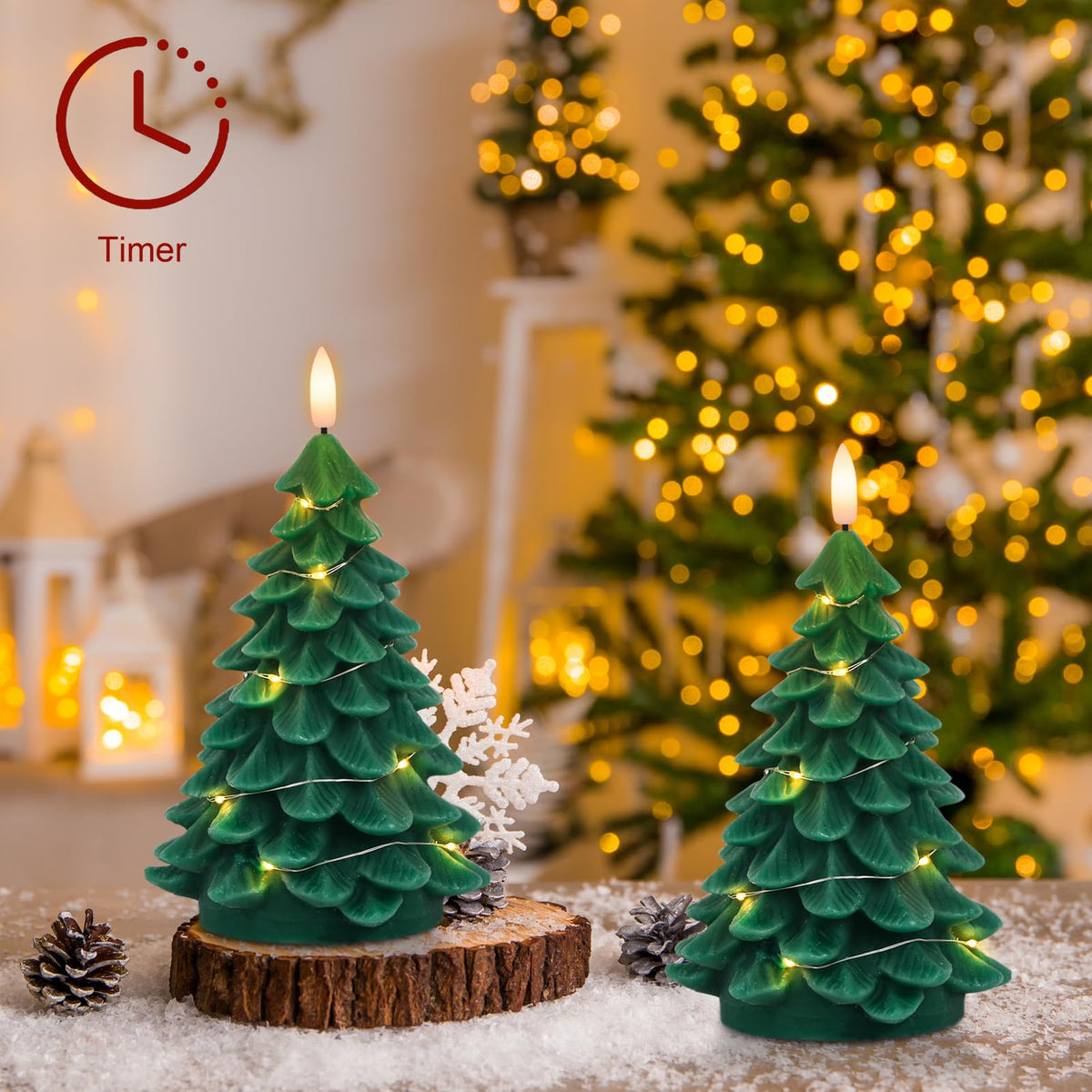 Dromance Flameless Pinecone Candles Battery Operated With 6 Hour Timer Set Of 2 Real Brown Wax 3D Wick Led Flickering Pillar Can