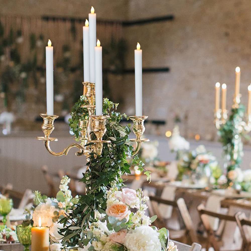 Q: What is the size of the candles and will they fit in standard candle holders?A: These flameless taper candles have a diameter of 0.78 inches, making them compatible with most standard candle holders.