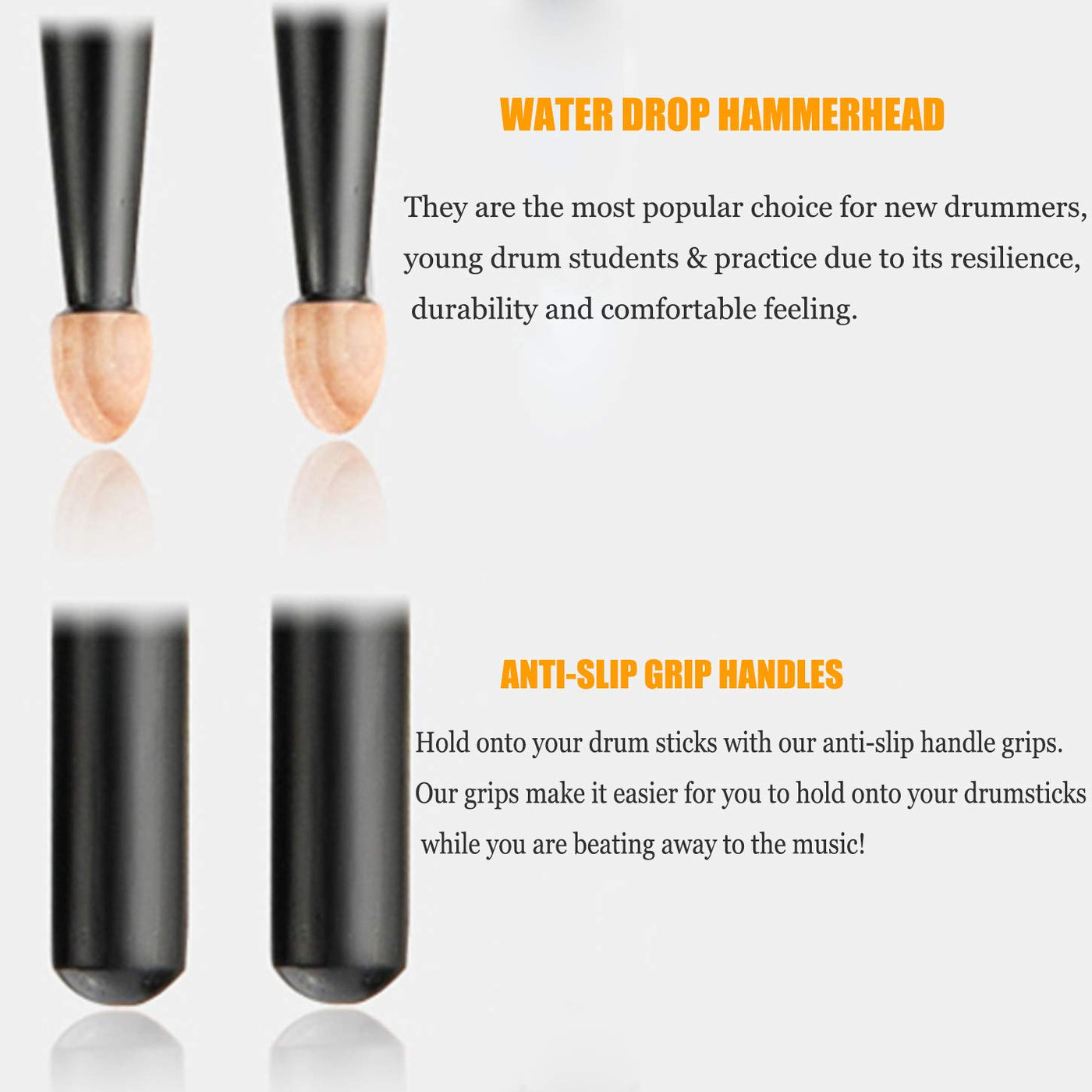 Carefully Selected Quality Materials Hardwood Drum Stick, The Fiber Structure Is Fine And Uniform, Has Strong Toughness, Especially In Anti-Vibration And Anti-Wear Performance, Has Certain Resistance To Bending And Corrosion Strong And Durable 5A Drum Stick Is Moderate In Hardness And Density, Not Easy To Damage, And Durable Drummer And Beginners Must-Haves 5A Drum Stick For Jazz Band, Orchestra Or Symphony,A Perfect Choice For Those Who Are Beginner And New To Drum Beating Perfect Balance Each Pair Of Drum Sticks Is Strictly Matched To Achieve A Perfect Balance After-Sale Guarantee 30 Days Unconditional Money Back Guarantee Backed Up By Our Awesome Customer Support, You Can Rest Assured To Buy Our Products Specifications: Drum Sticks Material: Hard Wood Drum Stick Type: 5A Drum Sticks Colors:Black Drum Sticks Length: 406 Cm 16 Inches Drum Sticks Diameter: 15 Cm 056 Inches Wood Tip: Drop-Shaped