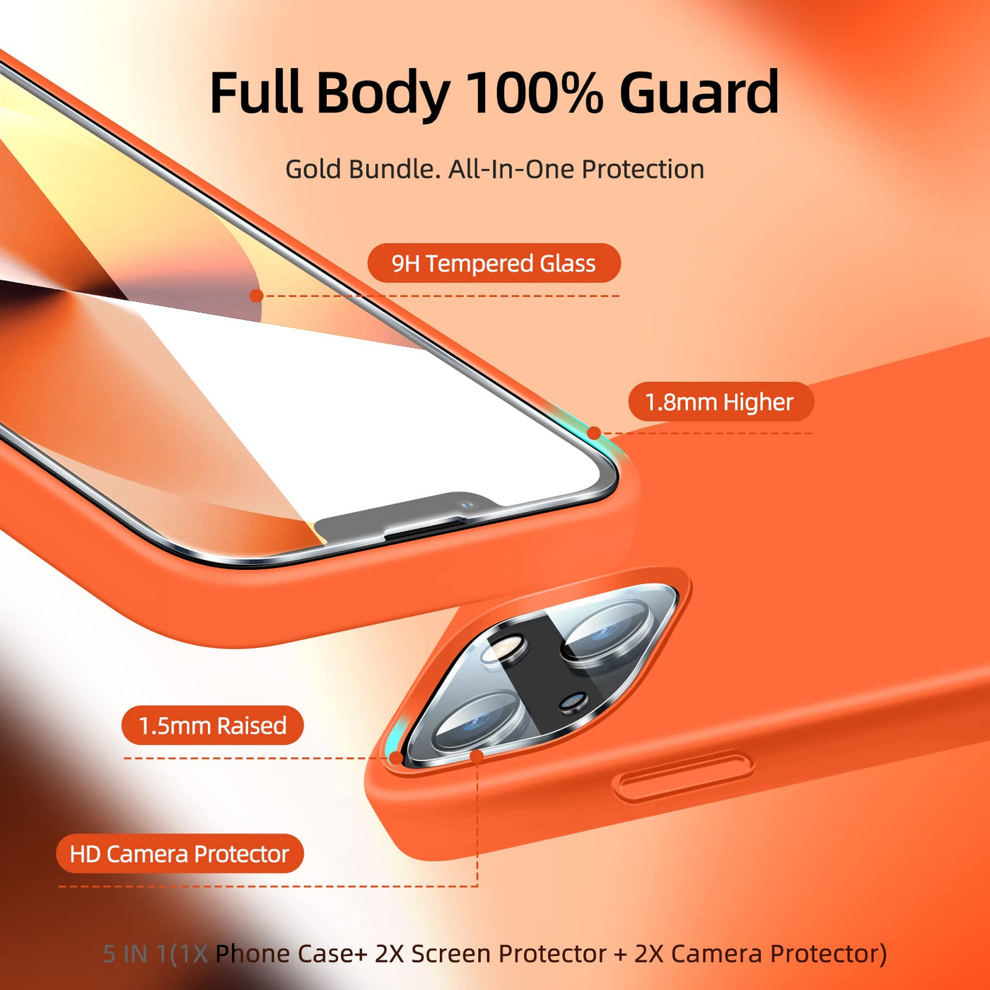Dssairo 5 In 1 Iphone 13 Case: Liquid Silicone Shockproof & Ultra Slim, With 2 Screen & Camera Protectors (6.1'', Orange)