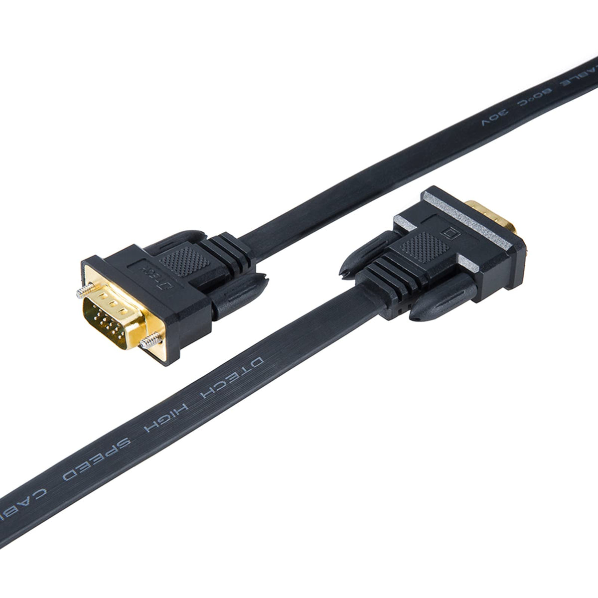 Q: What is the advantage of the ultra-thin flat design of this VGA cable?A: The ultra-thin flat design of the VGA cable is ideal for tight spaces and allows for easy routing under carpets or along walls, making it a practical choice for home or office setups.