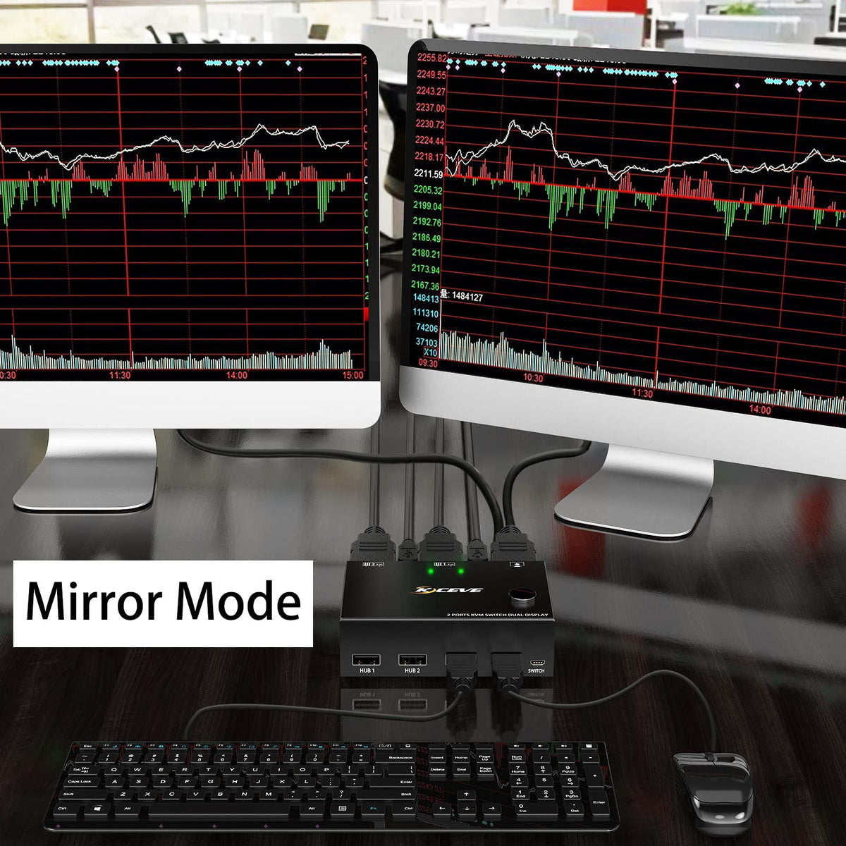 ?Kvm Switch Dual Monitor Hdmi 2 Port?This Dual Monitor Kvm Switcher 2 Monitors 2 Computers Allow You To Control 2 Pcs By Only One Set Of Keyboard & Mouse,Share 4 Usb Devices And 2 Monitors(Extend Display Mode Or Copy Display Mode). Please Note That The Extended Mode Can Output Two Different Screens, And The Copy Mode Can Output Two Identical Screens. | ?Ultra Hd 4K@ 60Hz?2 Port Hdmi Kvm Switch Dual Monitor Support Input Of Different Resolutions, Such As 4K@60Hz, 1440P@60Hz, 3D And 1080P@60Hz Or Lower Resolution. Note: If You Need A 4K Resolution , Please Use Version 2.0 Hdmi Cable And Make Sure Your Computers And Monitors Support 4K ! | ?Kvm Switch With 4 Usb 2.0 Ports?Dual Monitors Hdmi Usb Switcher With Standard Usb 2.0 Port Which Can Recognize Wired/Wireless Keyboard Mouse Usb Hard Drive Printer Or Other Usb Devices.Please Note That This Kvm Switch Not Compatible With Hd Webcam And Macbook Pro Well,So We Don'T Recomand Connect To Our Product. | ?Great Compatibility & 2 Switching Mode?Mleeda Kvm Switch Hdmi Driver-Free For Windows 10/8/8.1/7/Vista/Xp And Mac Os,Linux.Plug And Play,No External Power Required. You Can Press The Button On The Panel Or Use The Desktop Controller(Included In The Package) To Switch The Computers.Led Indicate The Active Computer. | ?Usb Hdmi Kvm With Wide Compatibility?Dual Monitor Kvm Support Many Kinds Of Input Devices,Such As Pc,Laptop,Apple Tv,Ps3/Ps4,Xbox.It Is Widely Applied For Office,Multimedia Teaching,Meeting Room,Etc. | ?Note?This Dual Monitor Kvm Switch Requires Each Computer To Have 2 Hdmi Output Ports And Supports Extended Display, Support Dvi/Vga/Dp/Usb C To Hdmi Converter. If Your Computer Only Supports Single Display, Then This Product Cannot Help You Get Dual Display Function. | After Connecting The Computers And The Monitors Through Kvm, You Need To Set The Screen Output Mode On The Computer (Press Windows+P) And Select The Output Mode In The Pop-Up Window On The Screen. Otherwise, Only One Of The Two Connected Monitors Has An Image.Any Questions Please Feel Free To Tell Us,Contact Way:(Sold By) Store Name -> Ask A Question.1 Year War-Ranty
