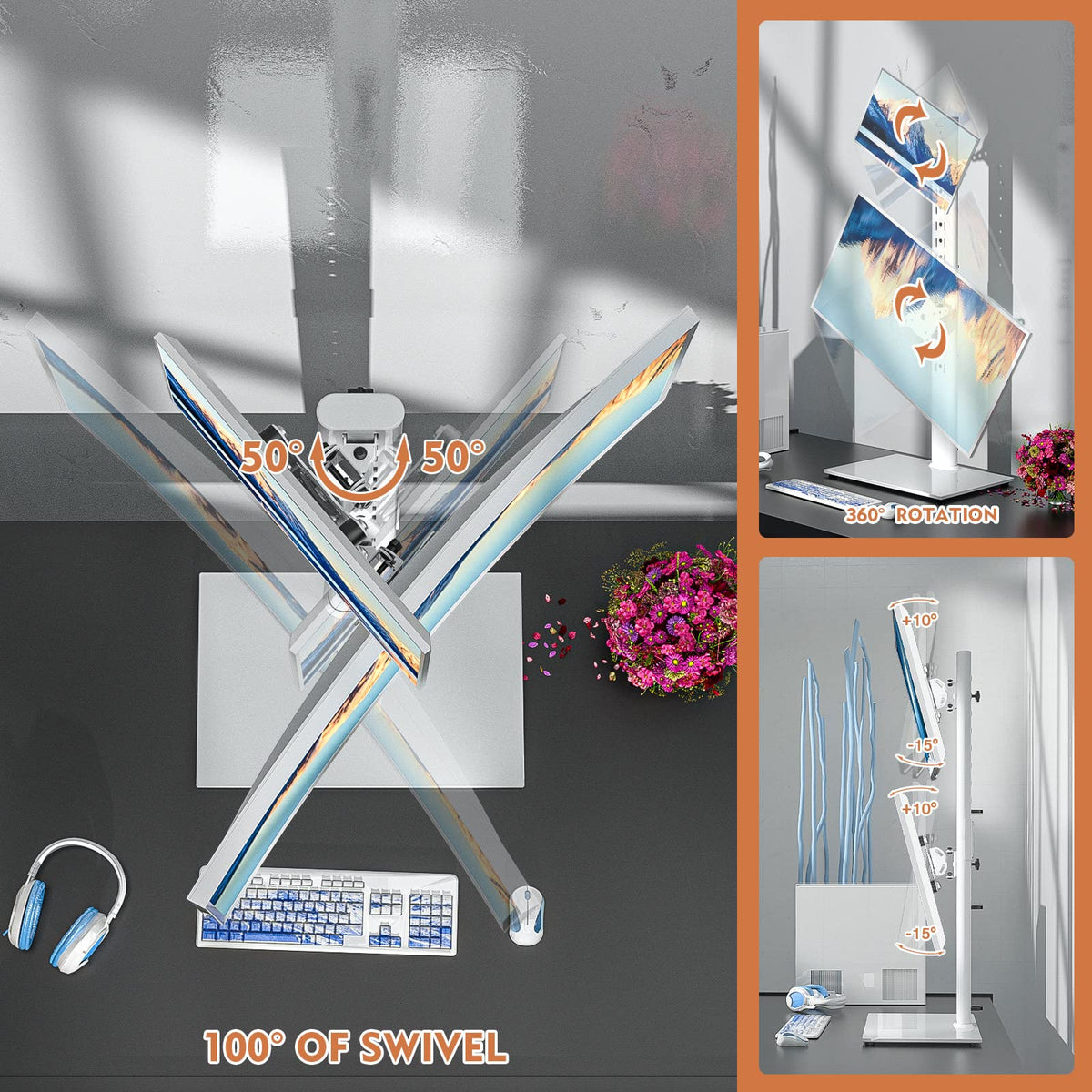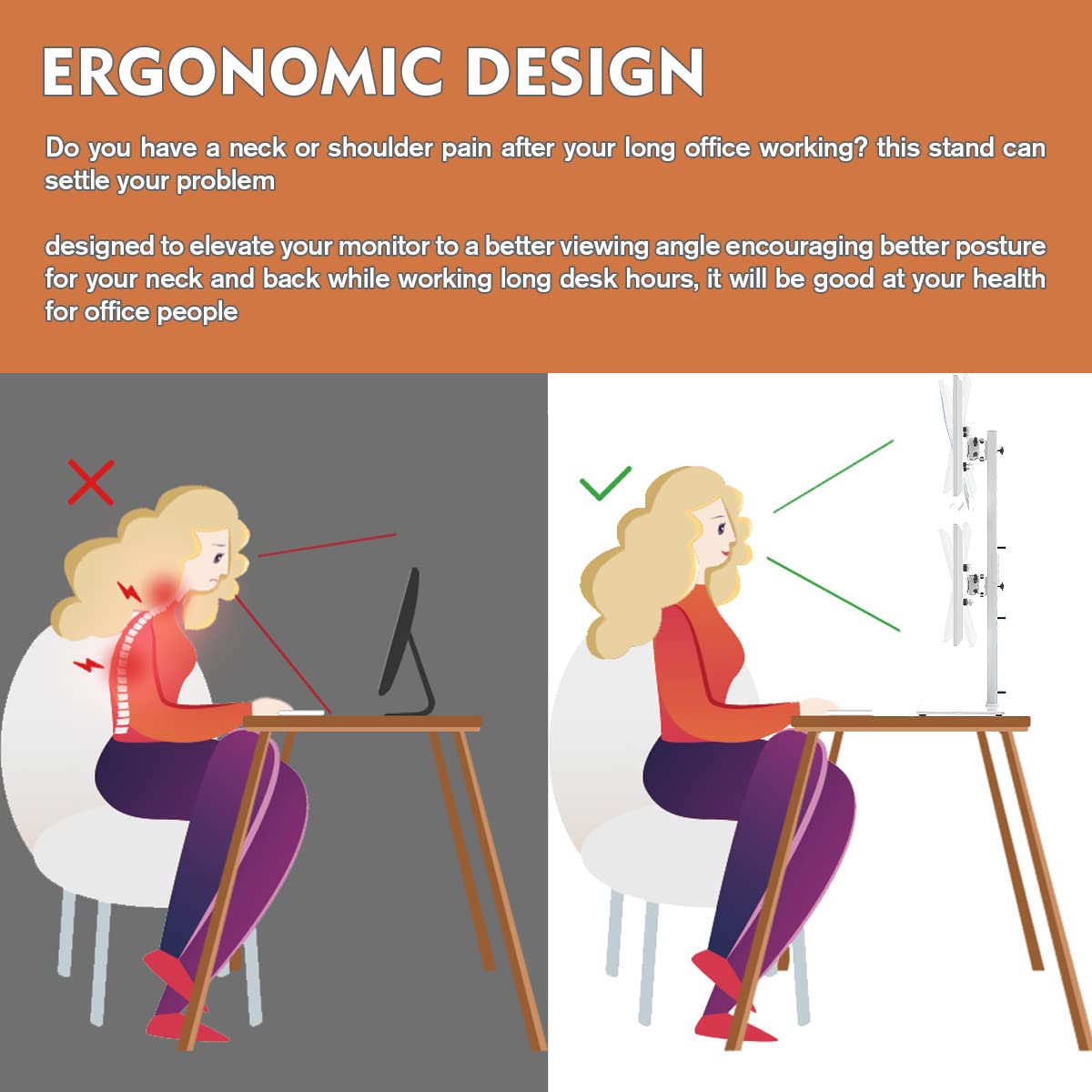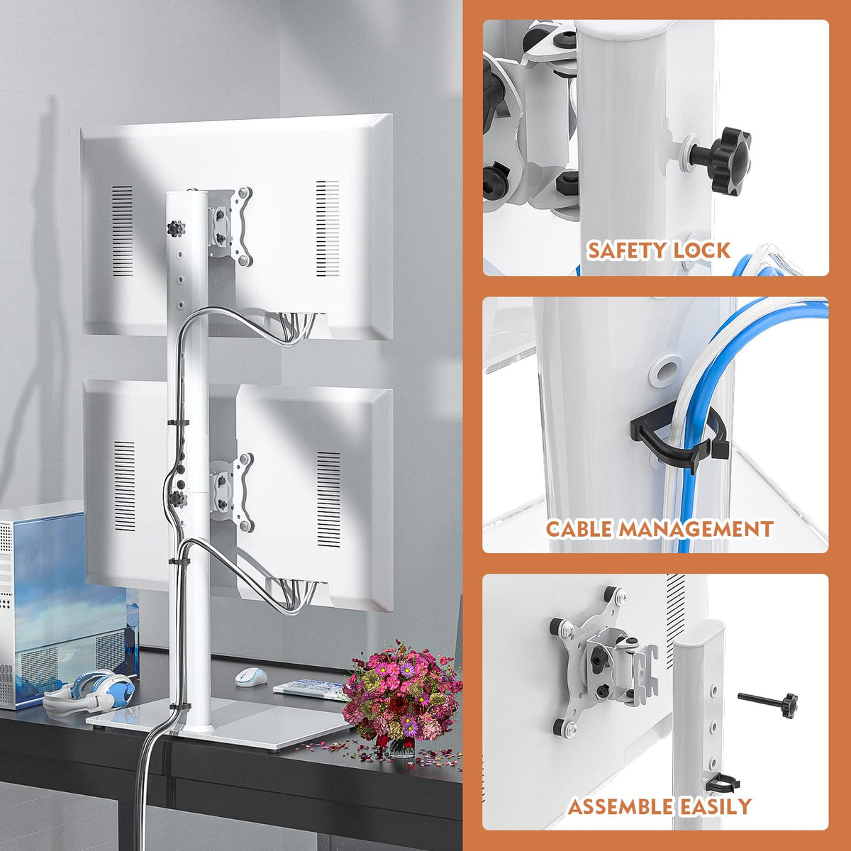 Dual Monitor Stand Vertical Stack Screen Free Standing Monitor Riser Fits Two 13 To 34 Inch Screen With Swivel, Tilt, Height A