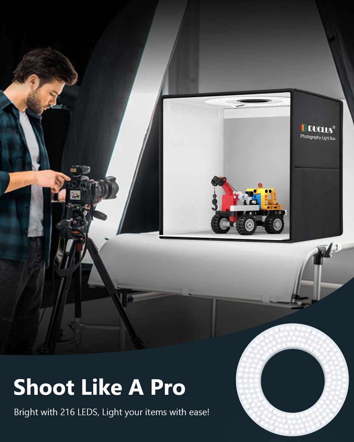 Duclus Light Box Photography 20'' X 20'', Large Portable Photo Studio Light Tent Kit, Professional Dimmable Photo Booth With 216