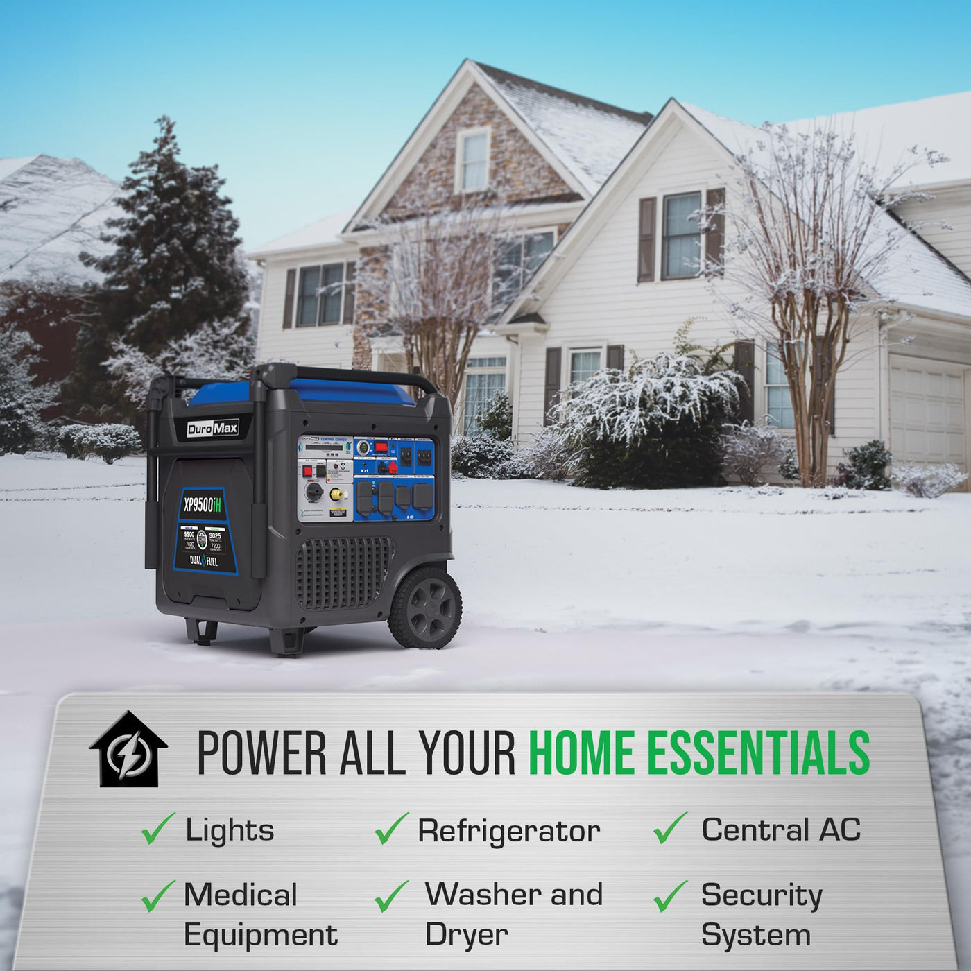 Q: Can this generator run on both gasoline and propane?A: Yes, the DuroMax XP9500iH features dual fuel technology, allowing it to operate on either gasoline or propane, providing flexibility in fuel choice.