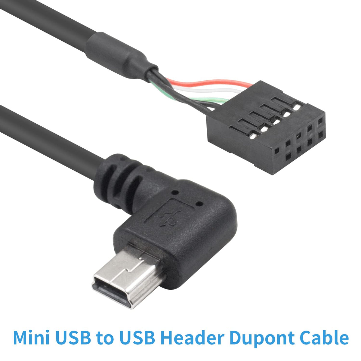 Duttek 90 Degree Left Angle Mini Usb Male To 9 Pin Motherboard Female Adapter Dupont Extended Cable.1.65Ft/50Cm Mini Usb To Motherboard Cable Is Mainly Used On Computer Motherboards. Usb Header To Mini Usb Cable Pin Spacing: 0.1 Inch/2.54Mm High Speed Mini Usb Extension Lead.Colors Defined As: Red 5V+, White D-, Green D+, Black Gnd Mini Usb To Usb Header Internal Use Of All Copper Core Wire, Aluminum Foil And Metal Compilation Mesh. Double Shielding, Can Well Reduce The Attenuation In The Signal Transmission To Make It More Stable. Packing: 2*Mini Usb Male To 2*9Pin Dupont Cable 50Cm. 2 Pack Note: Pay Special Attention To The Number Of Pins When Inserting Into The Motherboard, Inserting The Wrong One May Result In Invalidating The Usb Device Or The Motherboard.