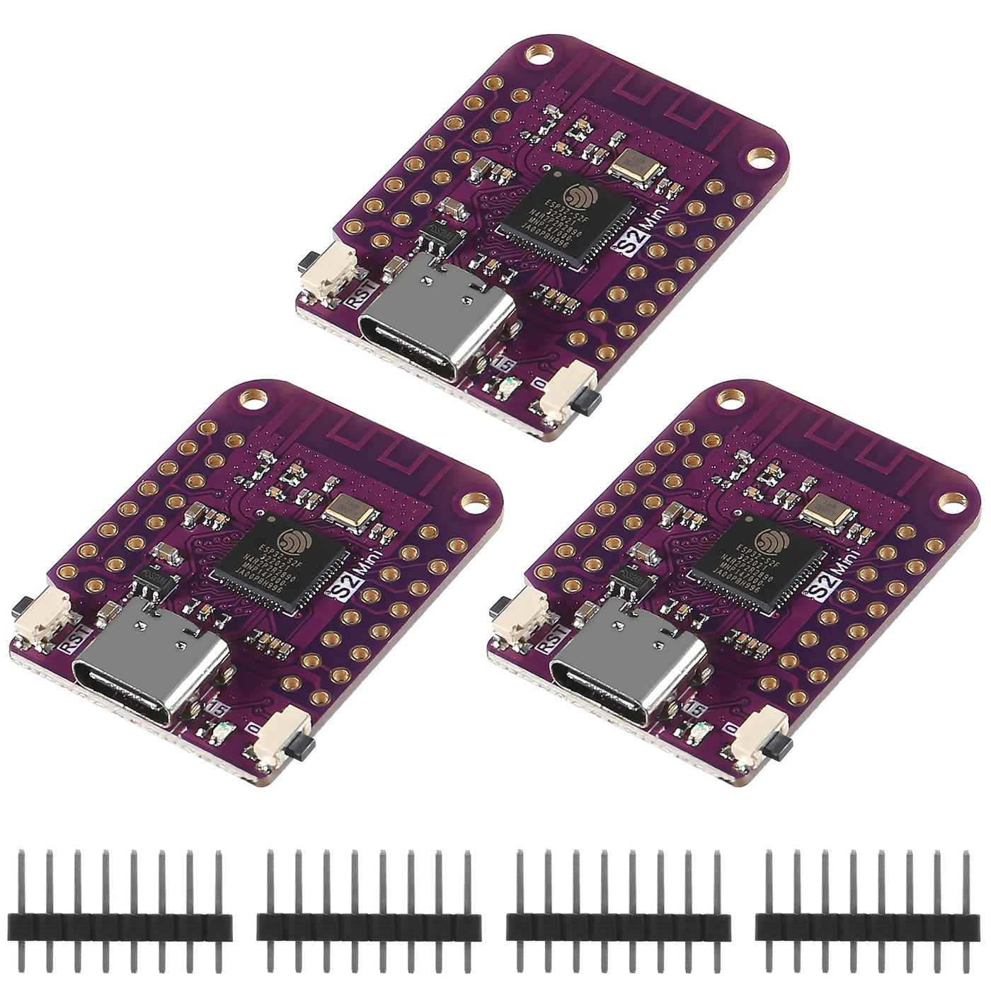 Q: Is the DWEII 3PCS S2 Mini Board compatible with Arduino and MicroPython?A: Yes, the DWEII 3PCS S2 Mini Board is compatible with Arduino and MicroPython, allowing users to program and control the board using these popular platforms, which is ideal for both beginners and experienced developers.