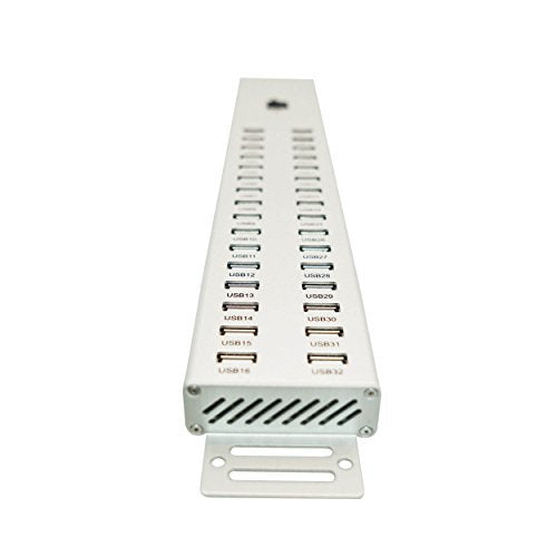 Dyconn Maxi High Power Charging & Data Transfer/Duplication USB 2.0 Hub BC1.2 Full Aluminum with Industrial Rack Mount (IPC) Bracket (32 Ports 160W 32A)