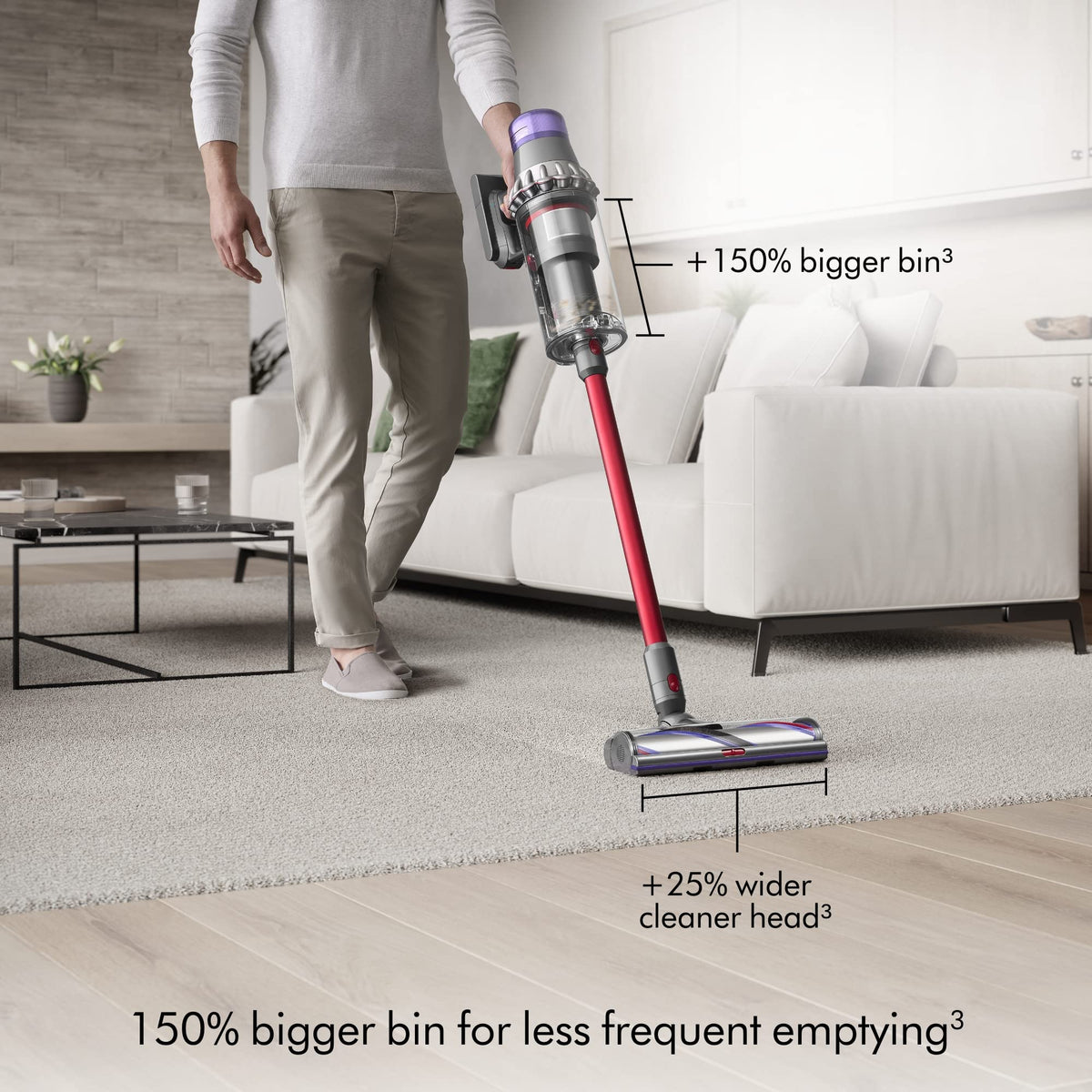 The Dyson Outsize Delivers Dyson Suction Power In A Larger Format. It'S Engineered With The Suction Power, Run Time, Size, And Tools To Deep Clean Larger Spaces. It Has A 25% Wider Cleaner Head And A 150% Larger Bin Compared To The Dyson V11. The Dyson Outsize Covers More Floor With Each Pass And Allows For More Cleaning Between Bin Emptying. The De-Tangling Digital Motorbar Xl Cleaner Head Deep Cleans Carpets And Hard Floors And Adapts Suction Power To Your Floor Type. Its Versatile Cordless Format Transforms Into A Handheld Vacuum With One Click So You Can Clean Up High, Down Low, And Everywhere In Between With Three Cleaning Modes For The Right Power Where You Need It. Comes With A 2-Year Warranty And Lifetime Dyson Support.Compared To The Dyson V8.Actual Runtime Will Vary Based On Power Mode, Dust Level, Floor Type And/Or Attachments Used.Compared To The Dyson V11.4Accuracy May Vary. Best Accuracy In Auto Mode. Auto Ramp Feature In Auto Mode Only.5In Boost Mode. All Other Modes Achieve At Least 99.97% Filtration.6Tested At The Inlet To Astm F558, Dust-Loaded.