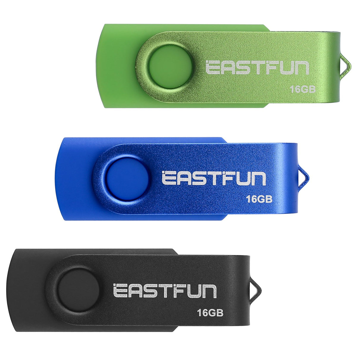 Eastfun 3Pack 16Gb Usb 2.0 Flash Drive Thumb Drive Jump Drive Pen Drive Zip Drive Memory Stick (Black Blue Green)