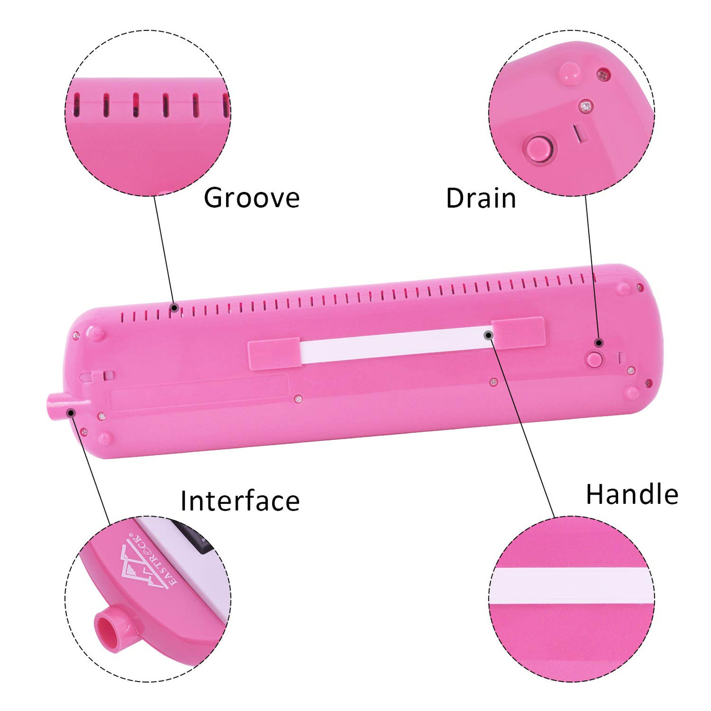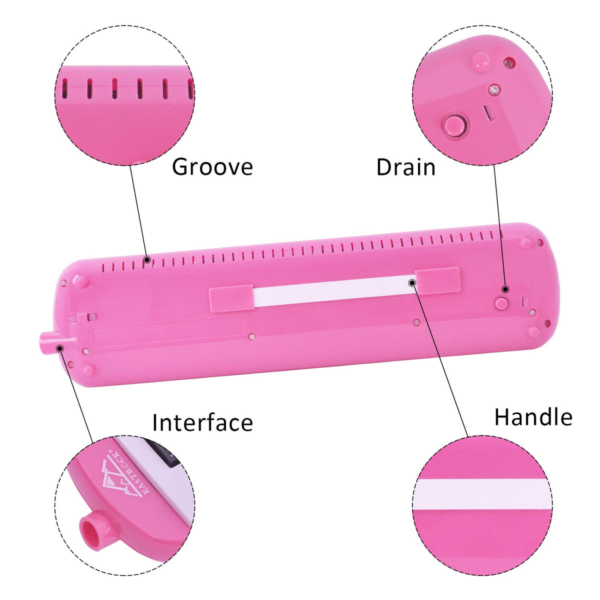 Eastrock Portable Melodica For Kids,Friends,Gift And Beginners Eastrock As Musician Instrument Expert We Take Product Quality Seriously And We Know Products Very Well, But Also To Understand The Needs Of The Customers.Eastrock Have Professional Team With Vitality, Enthusiasm, The Team Of Conversationalist, Stickers Of Quality And After-Sale Service. Eastrock Each Instrument Will Be Tested By Quality Inspection Department When Ready To Leave Our Factory.So Please Be Confidence To Choose Eastrock Melodica,We Will Offer 1 Year Manufacture Warranty Against Defect. Specifications: Material: Plastic Color: Pink Keys: 32Key Item Size: 17.7 * 5.5 * 2.75In Item Weight: 2.43Lb Package List: 1 * Melodica 1 * Mouthpieces 1 * Extension Hose 1 * Bag 1 * Shoulder Strap 1 * Cleaning Cloth