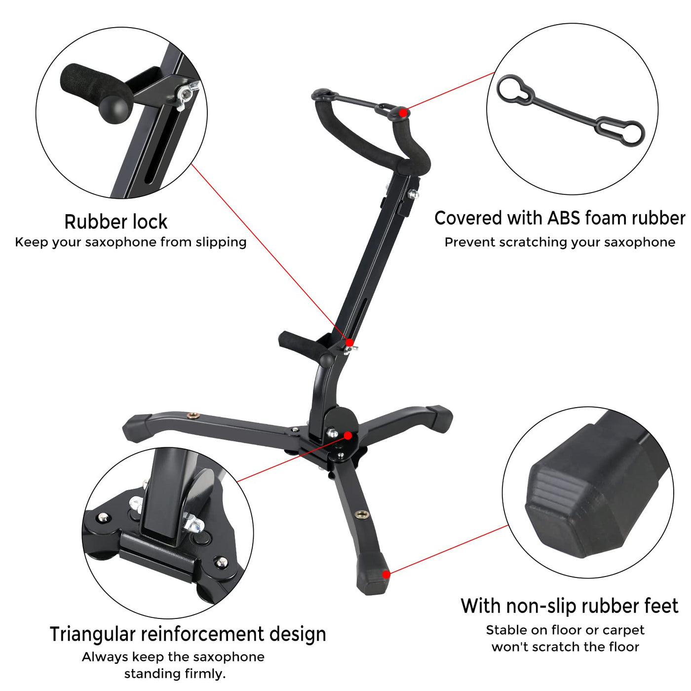 Eastrock Alto&Tenor Saxophone Stand Folding Saxophone Stand Saxophone Holder Rack With 2 Detachable Flute/Clarinet Holders Carry