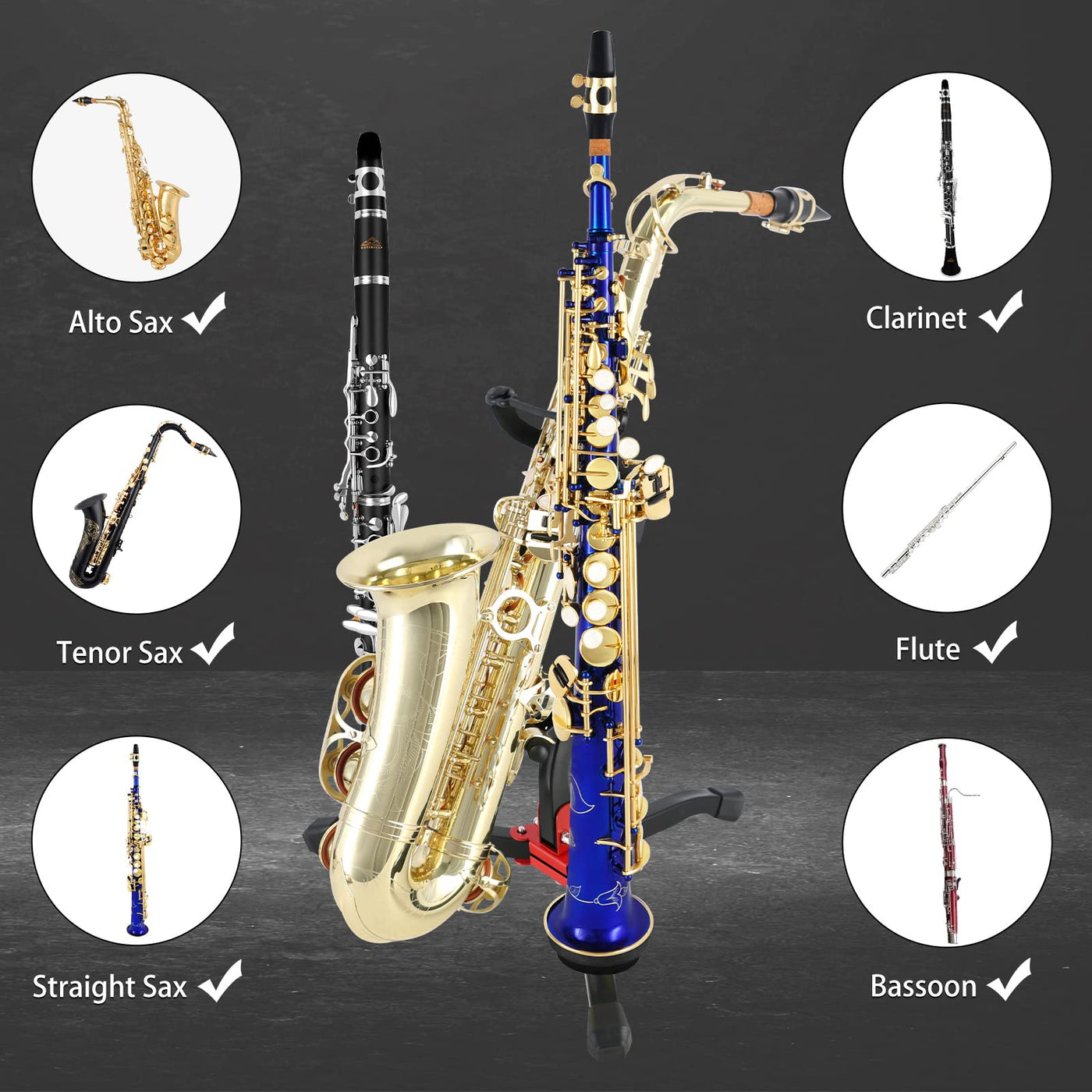 Eastrock Alto&Tenor Saxophone Stand Folding Saxophone Stand Saxophone Holder Rack With Clarinet/Flute Stand,Straight Saxophone S