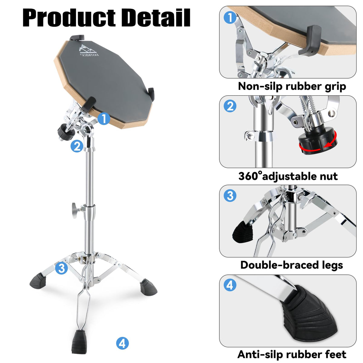 Eastrock Practice Drum Pads Are Noiseless, You Can Practice Your Drum Skill Anytime, Little Noise You Can Made And It Can Be Your First Choice Before You Decide To Begin Playing A Real Drum You Can Use This Slient Drum First, And Then You Will Make Sure Whether You Want To Play Real Drums Or Not