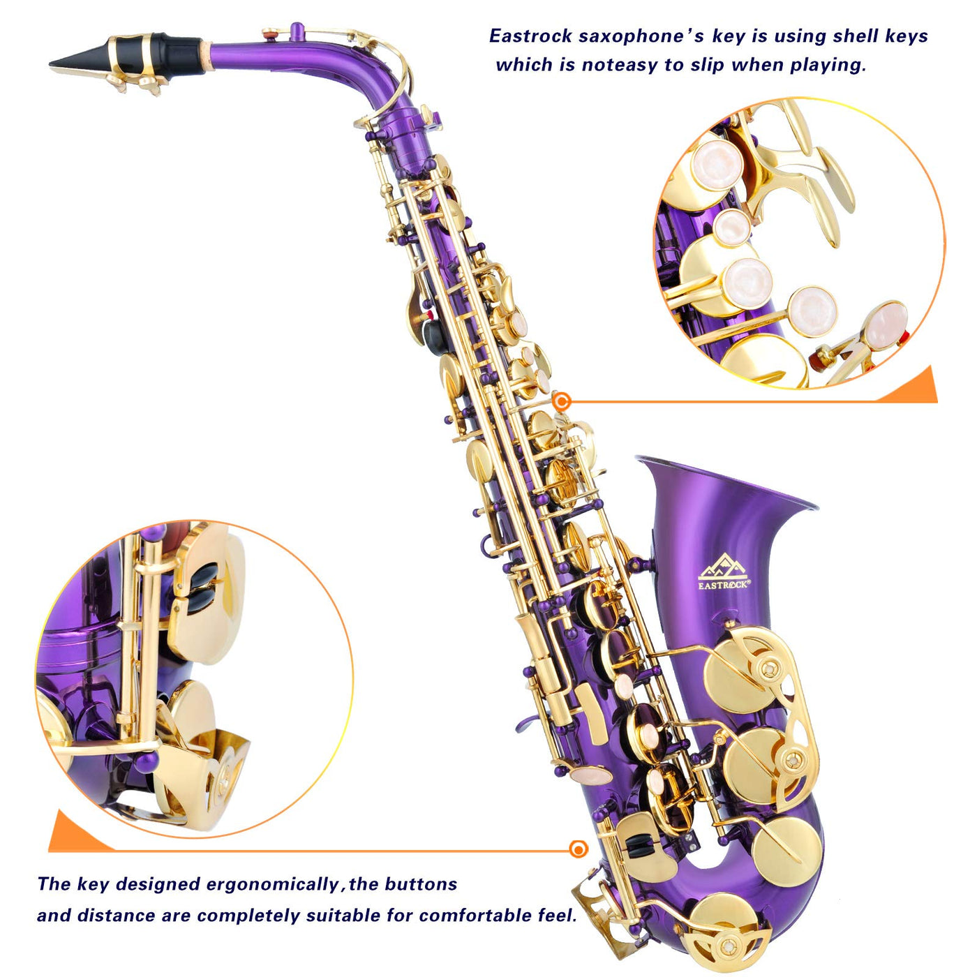 Eastrock Purple/Golden Alto Saxophone E Flat Sax Full Kit For Students Beginner With Carrying Case,Mouthpiece,Mouthpiece Cushion