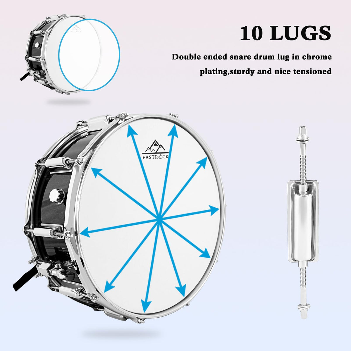Eastrock Snare Drum 14X5.5 Inches For Student Beginners With Gig Bag, Drumsticks, Drum Keys, Coated Material Drum Head, Black