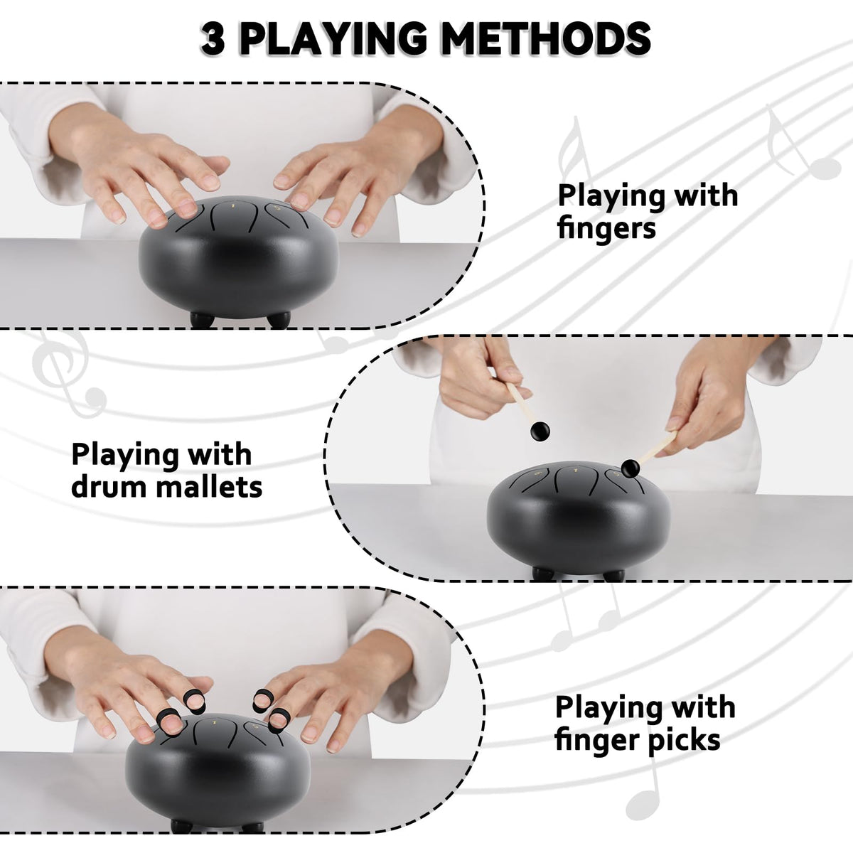 Playing A Tongue Drum Can Relieve Stress And Bring Relaxation And Peaceful Energy Into Your Life. Whats More, It Is Pretty Helpful For Calming Down Peoples Emotions. Package Included: 1 X Steel Tongue Drum 2 X Pairs Of Drum Mallets 1 X Music Book (With Instructions)