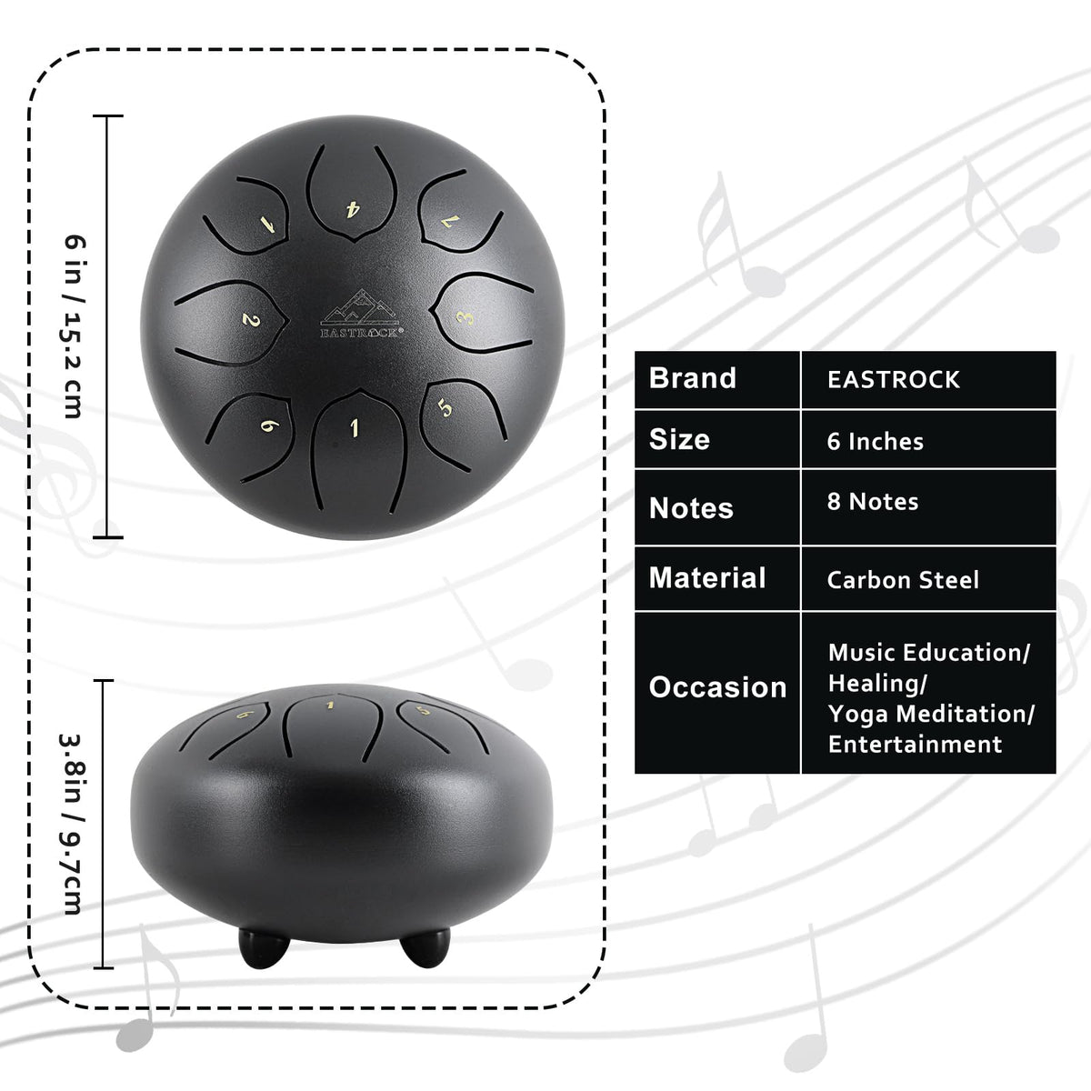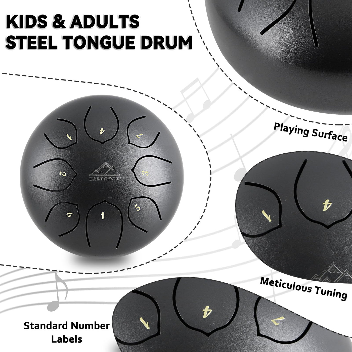 Eastrock Steel Tongue Drum For Kids 6 Inches 8 Notes Percussion Instrument Handpan Drum C Key With Travel Bag,For Meditation Ent