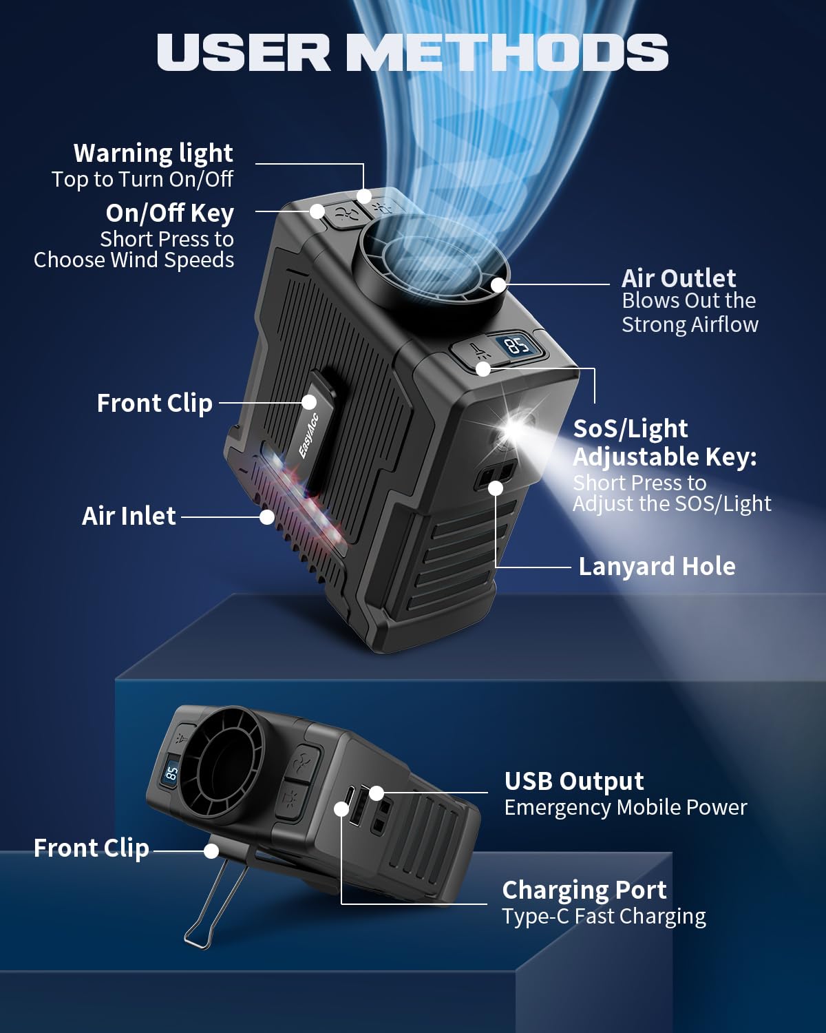 Q: Is the waist fan comfortable to wear while working outdoors?A: Absolutely! The lightweight and compact design of the EasyAcc Waist Fan allows for comfortable hands-free use, making it ideal for outdoor activities such as gardening, farming, or hiking.