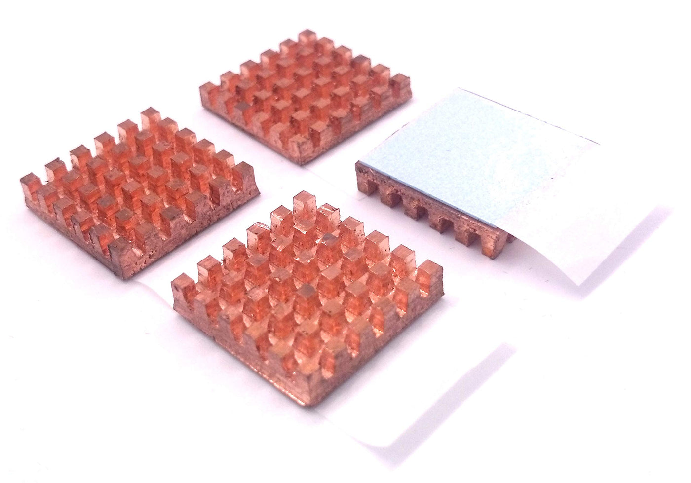 25Mm Copper Heatsink Kit Material: Engraved C1100 Copper Color: Copper Tone Coating: Pure Copper Dimension: 25Mm X 25Mm X 4Mm (L *W*H) Weight: 14 Gram Per Piece Mounting Style: Smd/Smt Fin Style: Vertical Number Of Fins: 6X6 Pre Applied 3M 8810 Thermal Conductive Adhesive Tape Tape Thermal Conductivity: 0.60 W/M-K (Datasheet-8810.Pdf) Standard: Rohs Compliance Model No: 252504C04-3M-8810 Package Includes: 4 Pieces 25Mm Copper Heatsink 4Pcs 25Mm Heatsink 25X25X4Mm + Pre Applied Thermal Conductive Adhesive Tape (25Mmx25Mmx4Mm) (Copper 25Mm) 0.98'' X 0.98'' X 0.16'' / 25Mm (L) X 25Mm (W) X 4Mm (H) Copper Heat Sink Kit Is Made From C1100 Alloy With High Thermal Conductivity, Durable Structure Stability And Light Weight. The Heat Sink Engraved In Vertical And Horizontal Grooves, That Is Greatly Increases The Heat Dissipation Function. This Kit Of Heat Sink Comes With 25X25Mm Pre-Applied Thermal Conductive Adhesive Tape, For Easy Installation And Optimum Heat Conductivity. 4Pcs 25 25 Copper Heatsink Together With Pre-Applied Thermal Conductive Adhesive Tape Is Easy To Install And Efficient In Heat Conduction From Power Source. This 25Mm Copper Heat Sink Kit Is Suitable For A Variety Of Cooling Applications Such As Cooling Raspberry Pi, Ic Chips, Led Modules Etc. These Heat Sinks Have Profiles Which Are Short Enough To Fit Within Standard Cases.