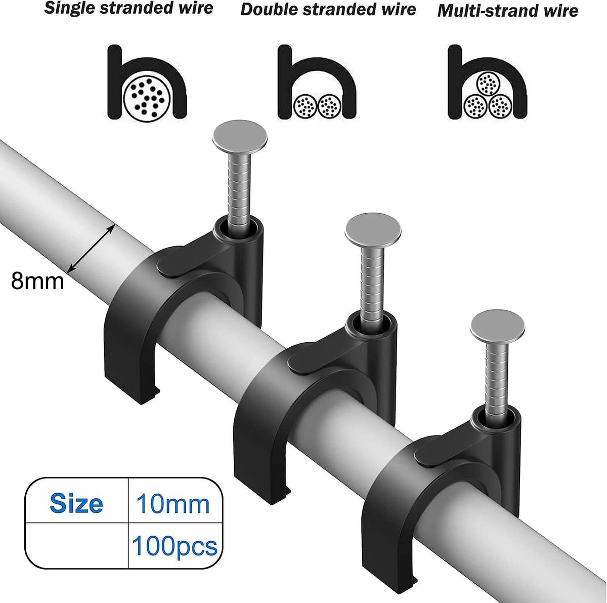 Easytle Plastic Cable Clamps Nail In Cable Clips 100 Pcs 10Mm Cable Wire Clips Cable Tacks Coax Cable Clips Speaker Wire Clips C
