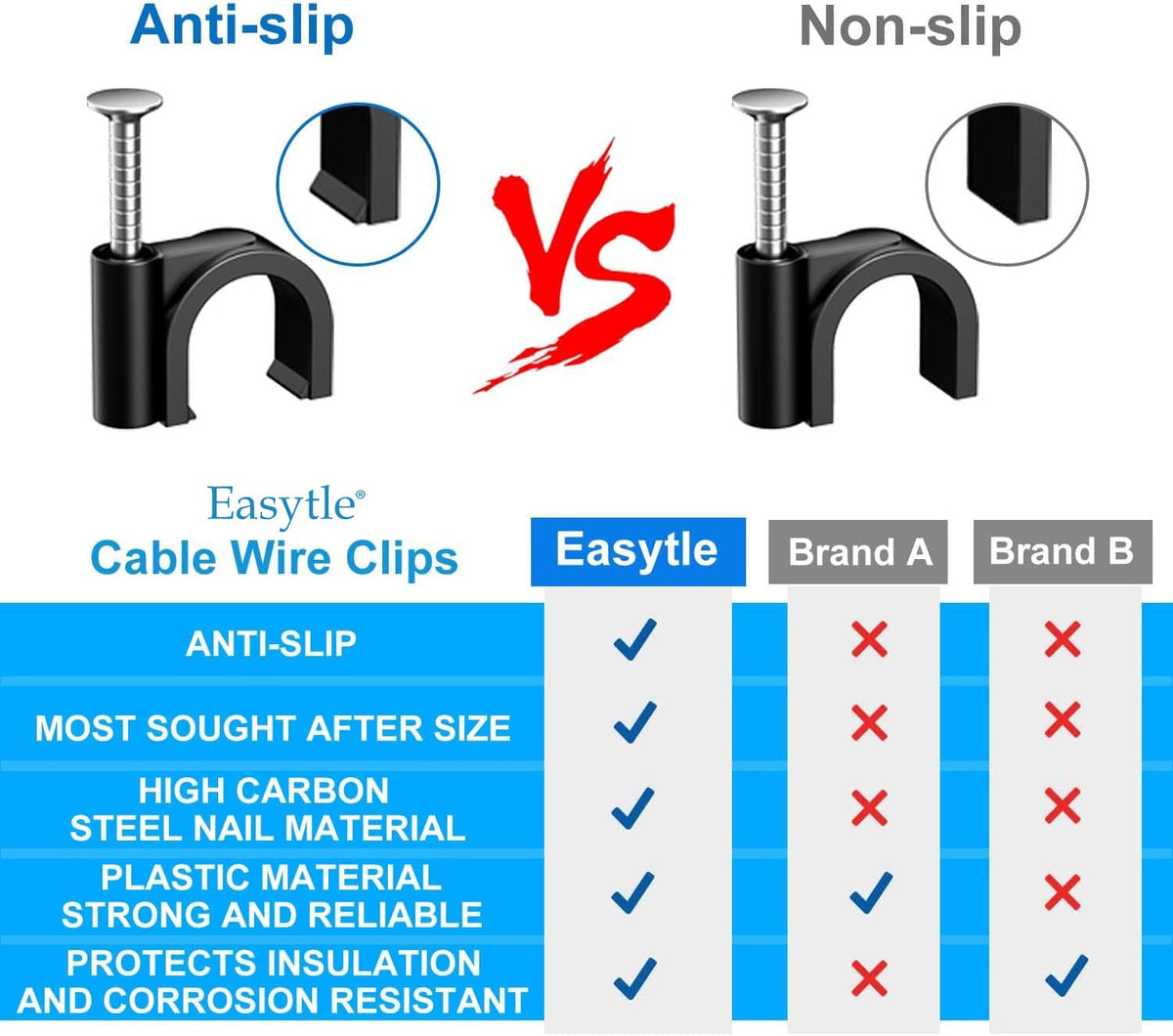 Our Cable Hangers For Cords Wall Clip Come In Packs Of 100 Pcs, And Cable Tacks Outdoor Cable Clips Can Securely Attach For The Cable Management Cable Wall Mount Clips Of Coax Cables, Ethernet Cables, Tv Cables, Rg6, Rg59, Cat6, Rj45, Etc. Why Choose Our Cord Clips For Wall Wire Clamps? Our Cable Nails Tacks Clips Are 100 Pcs Per Set, 10 Mm Size Nail Cable Clips Outdoor, You Will Have The Perfect Size Cord Holder Wall Cord Clips, Wire Tacks Black Helps Organize And Clean Up Wires And Cords. Coaxial Cable Clips Are Made Of Plastic And Hardened Nails,Cable Cord Tacks For Wall Is Slightly Flexible. Baseboard Wire Clips Are Simple Construction, Solidly Manufactured And Very Difficult To Break. Small Wire Clips Durable And Well Made, Cable Staples Easy To Install, Attached Well To Cable Hook Wall. Our Coaxial Wire Clips For Electric Wires With Special One-Piece Pressing, Mini Cable Clips Have Long Enough Nails To Get The Job Done And Cord Cable Clips Will Never Slide Out Or Loosen. Our Plastic Wire Clips Are Applicable To Home And Office Use And Nail Cable Holders Can For Flexible Cable Management. Not Only Can Cable Mount Clips Help Those Cluttered Cords On The Floor Much Cleaner And Safer, But Also Nail Cable To Wall Also Can Make Your House Neat. Lots Of Great Uses For These Cable Nail Clips, But As Small Cable Clips Black Nail Easy To Use, Wire Nail Holder Work Very Well, Garage Door Wire Staples To Clean Up Single Cable Runs And The Like. Black Wire Tacks Helps Keep Cable Against/Attached To The Wall.&Nbsp; Our Nail Wire Clips Can Be Easily Installed By Simply Positioning The Cable Hooks Wall Clamps For Wires, Line Cable Wire Tacks Up And Using A Hammer To Tap Nail For Cable Nail In Clips Into A Surface Of Wood, Plaster, Brick, Etc. Also, Nail In Cable Holder Can Prevent You From Tripping The Loose Cables, Keeping You Safe.